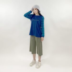 *สั่งซื้อเฉพาะในเว็ปไซต์* Flannel Checked Sleeve Knit Tunic (Navy)