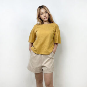3/4 Puff Sleeves T-Shirt (55% Cotton, 45% Polyester) (Yellow)