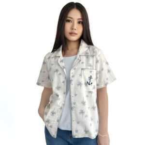 Palm Tree Anchor Pocket Shirt (50% Cotton, 50% Rayon) (White)