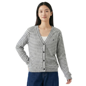 Striped Long Sleeves Cardigan with Anchor Embroidered (50% Cotton, 50% Rayon) (Grey)