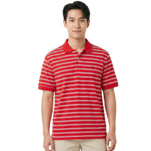 Men Striped Polo Shirt with Embroidery (50% Cotton, 50% Rayon) (Red)