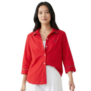 Bright Red 3/4 Sleeve Shirt with Piping Detail and Anchor Embroidery (50% Cotton, 50% Rayon) (Red)