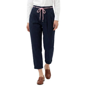 Classic Navy Cropped Pants with Rope Belt (50% Cotton, 50% Rayon) (Navy)