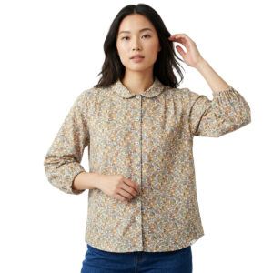 Casual Floral Print Blouse with Puff Sleeves (50% Cotton, 50% Rayon) (Yellow)