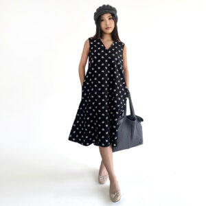 V-Neck Floral Dress (55% Cotton, 45% Polyester) (Black)