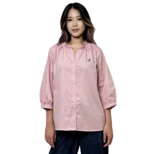 3/4 Sleeves with Floral Detail Blouse (55% Cotton, 45% Polyester) (Pink)