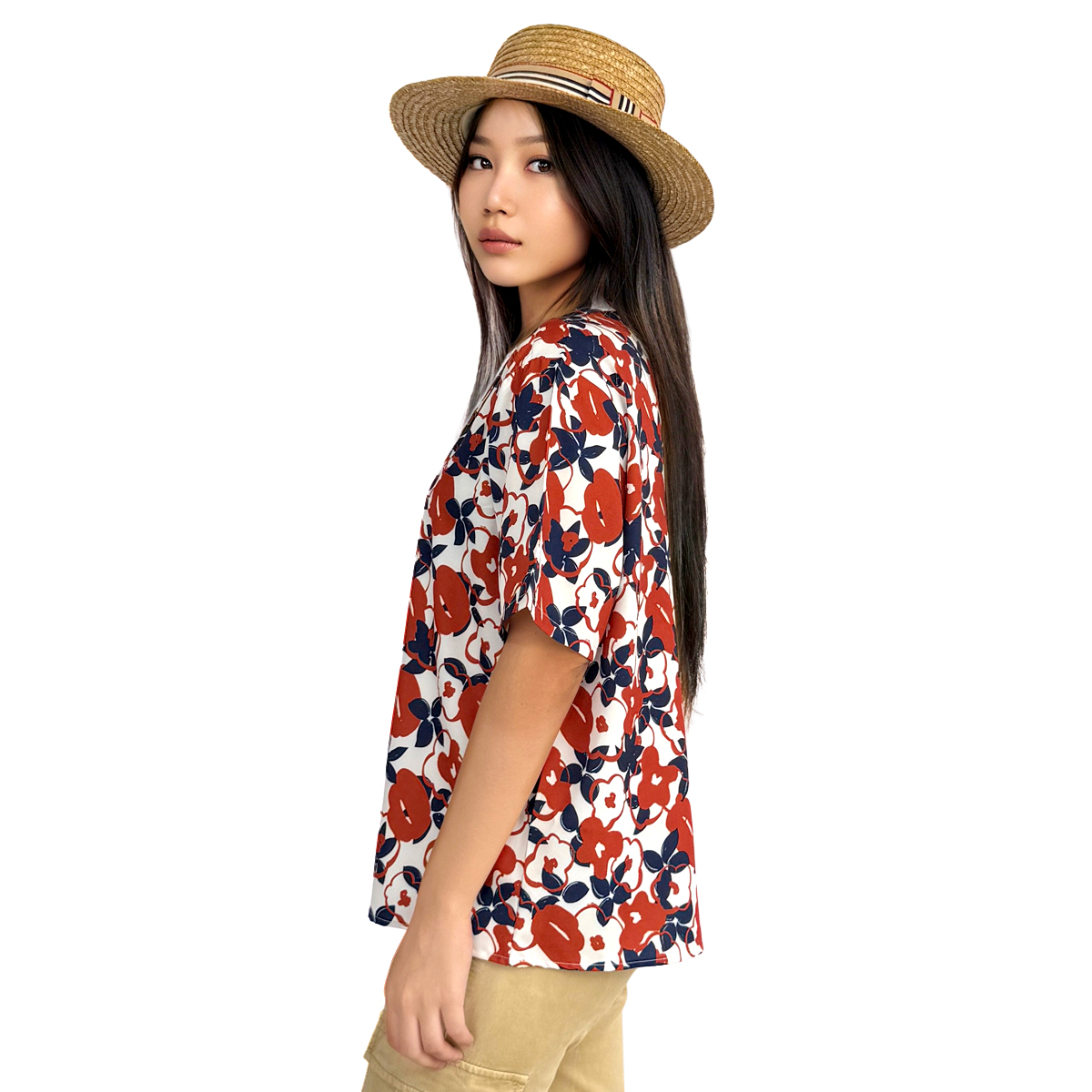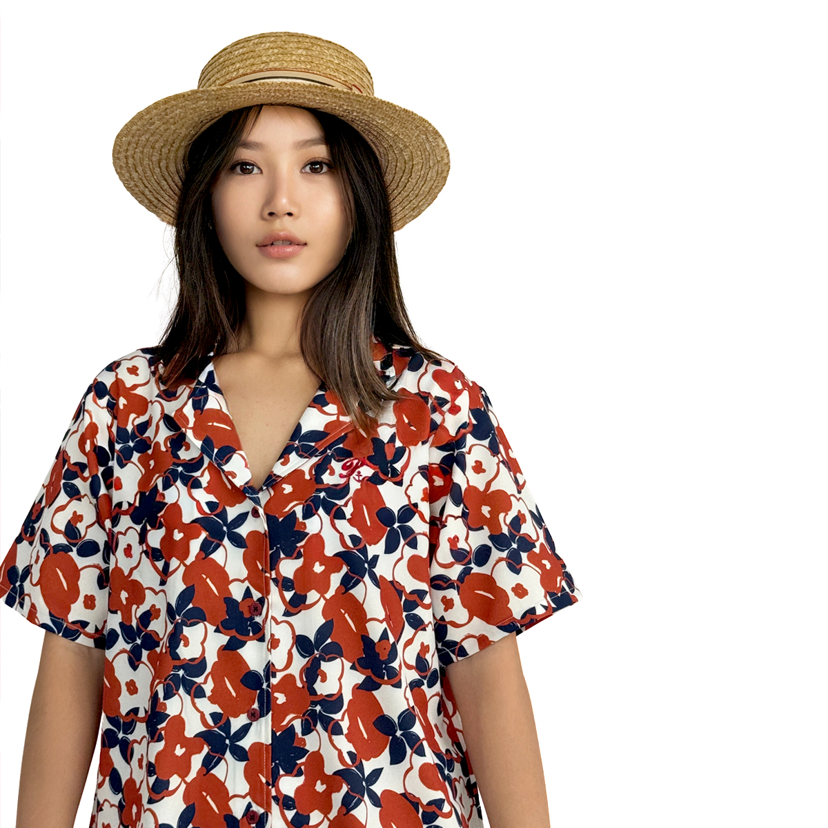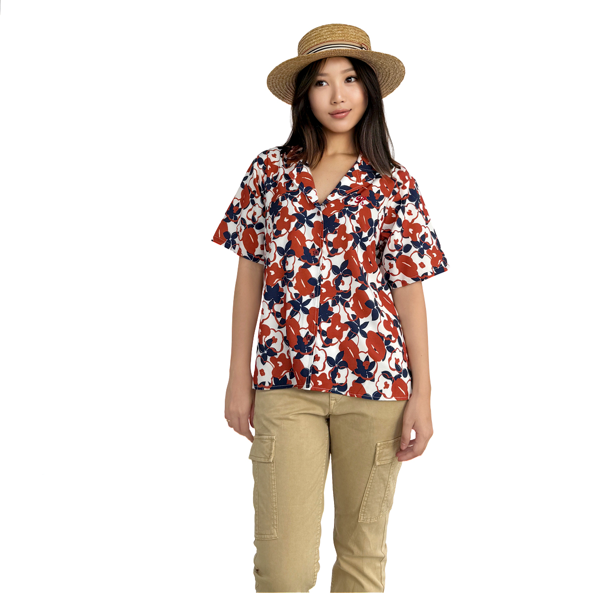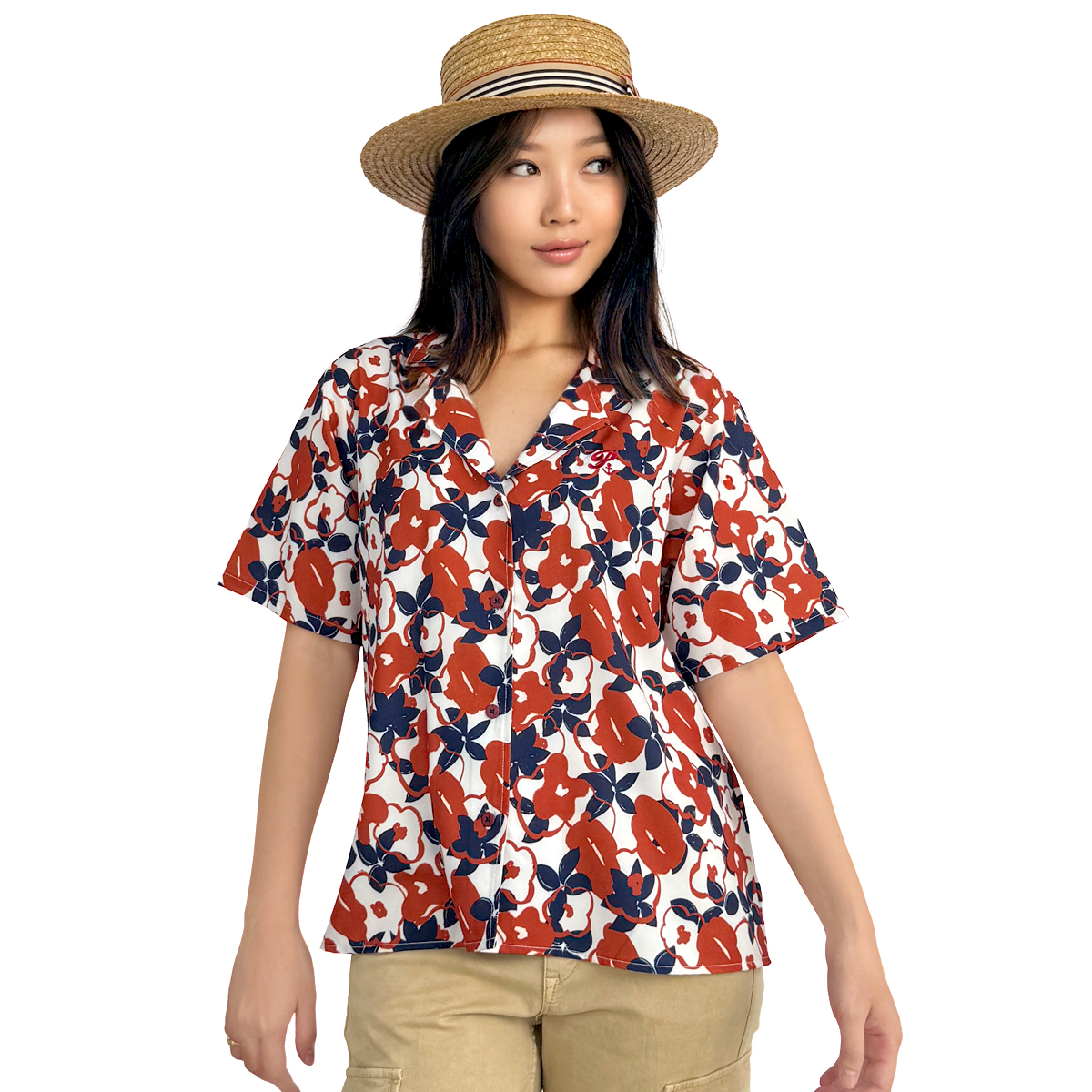 *สินค้าพิเศษเฉพาะออนไลน์* Floral Print Short Sleeve Hawaii Shirt (55% Cotton, 45% Polyester) (Orange)