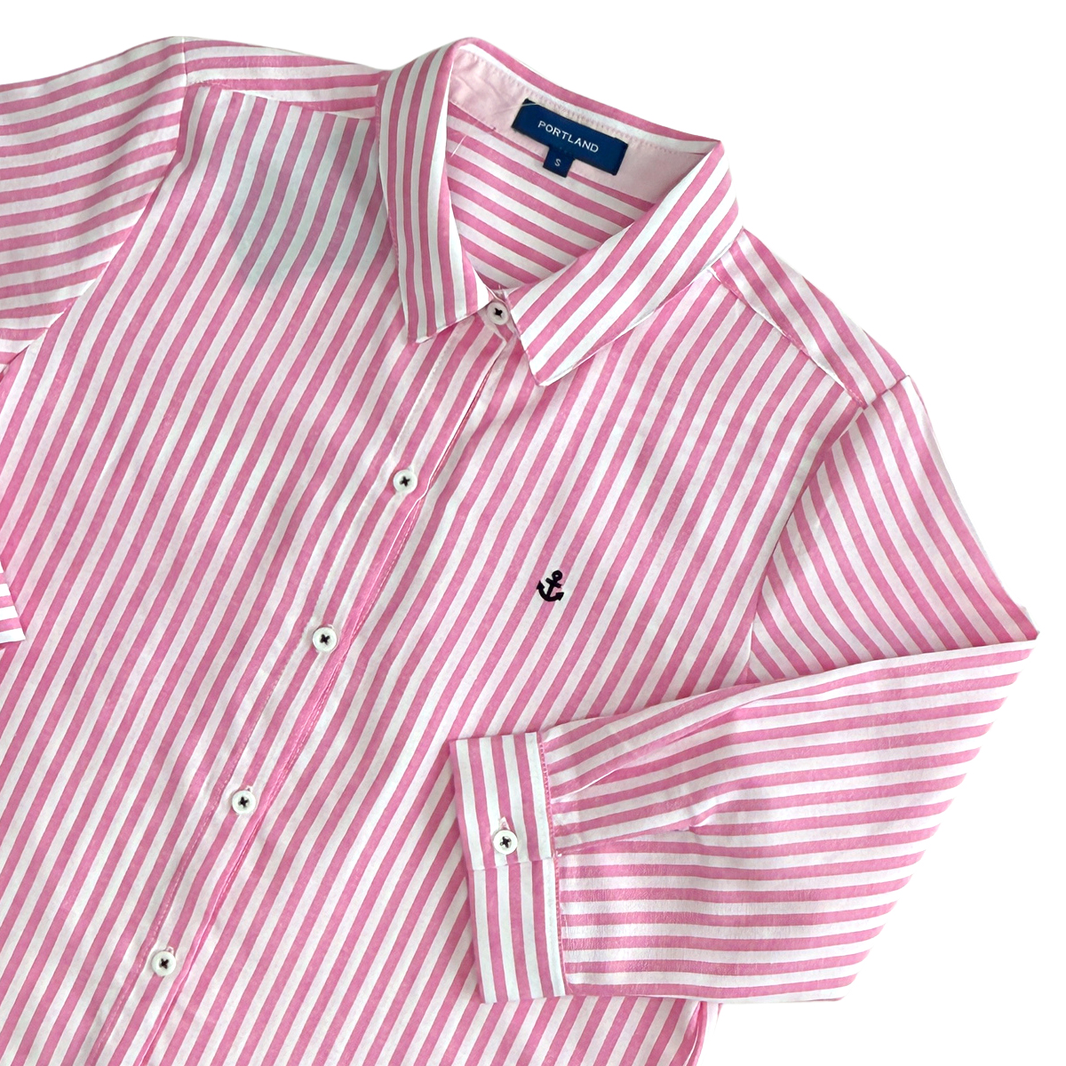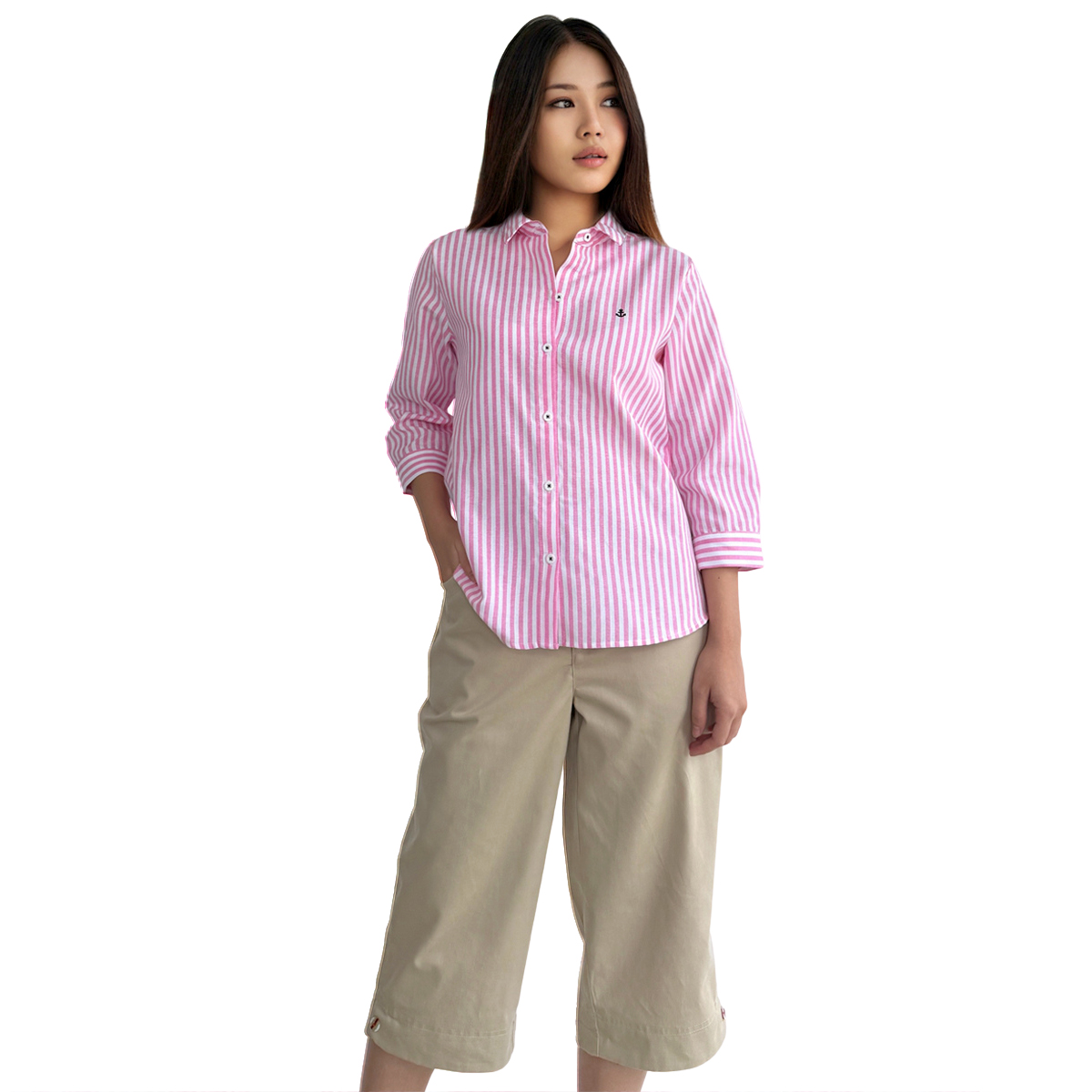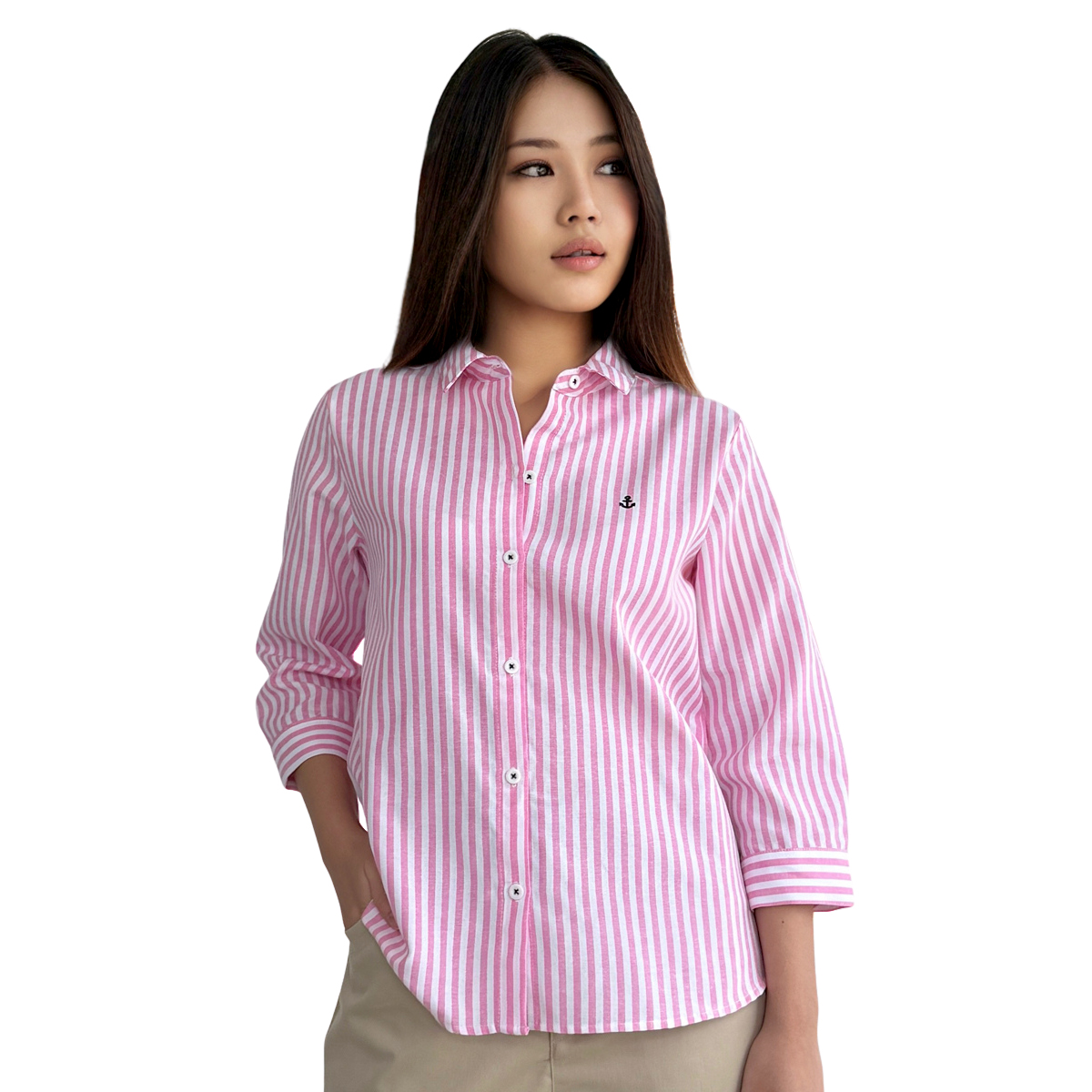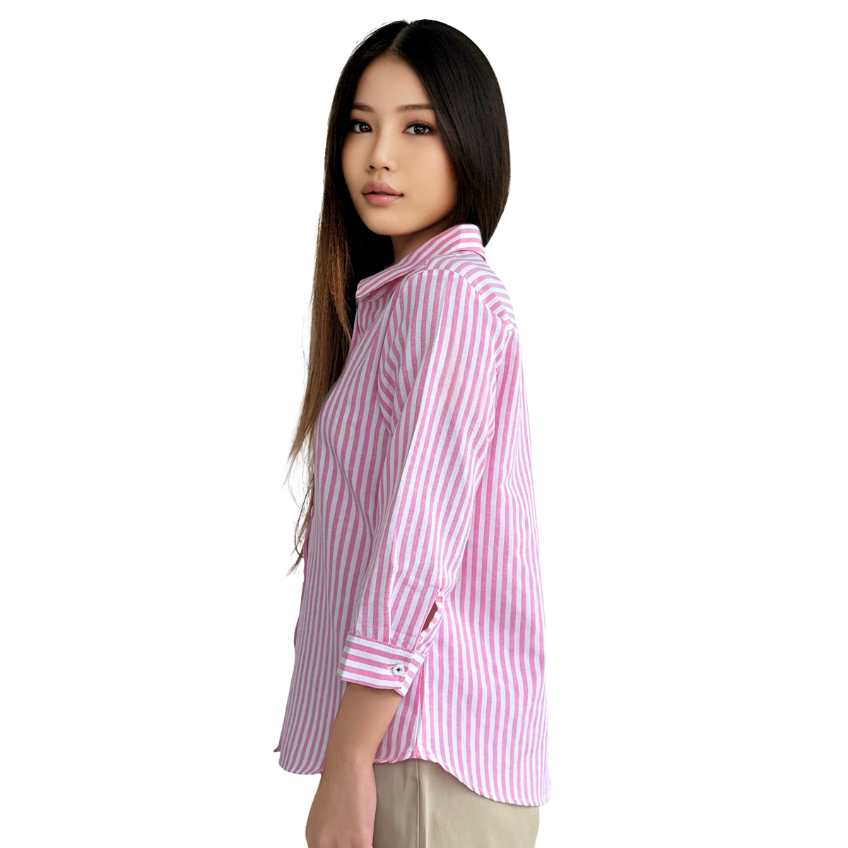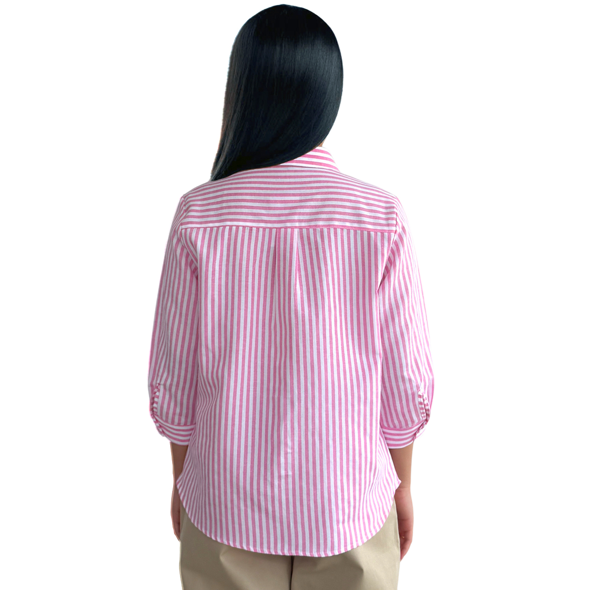 3/4 Sleeve Striped Shirt (55% Cotton, 45% Polyester) (Pink)