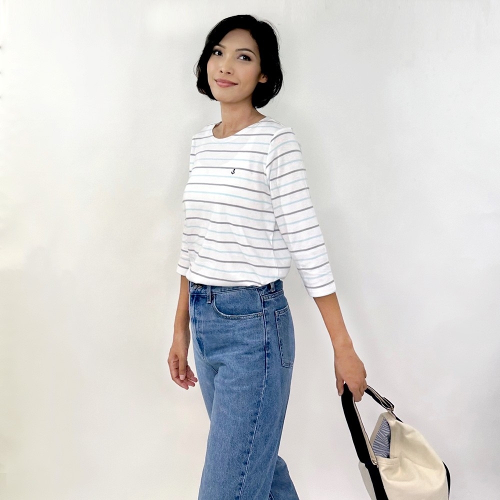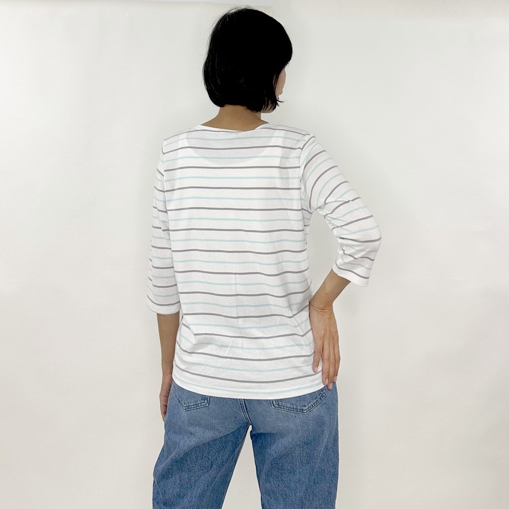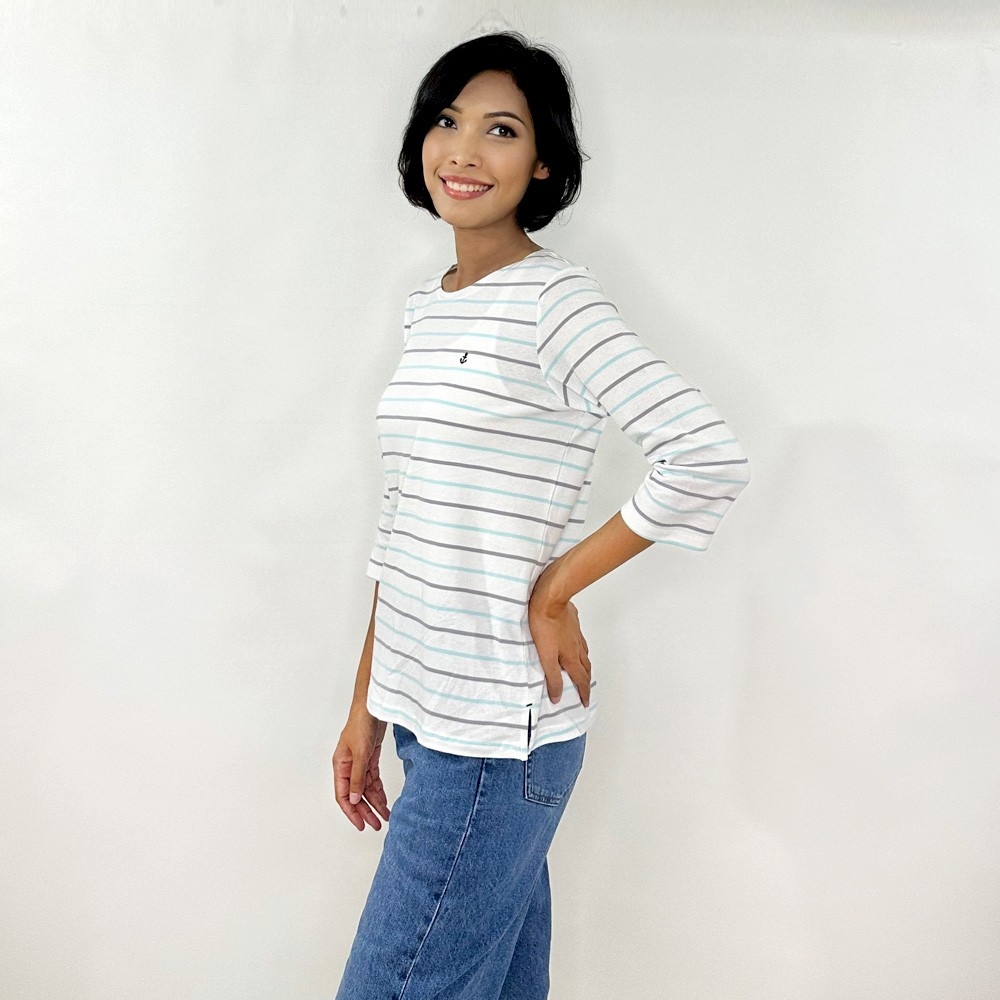 3/4 Sleeve Yarn Dyed T-Shirt (Blue)