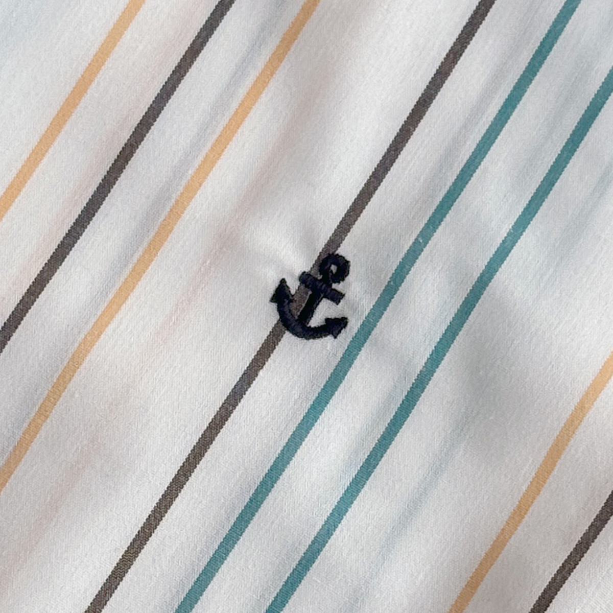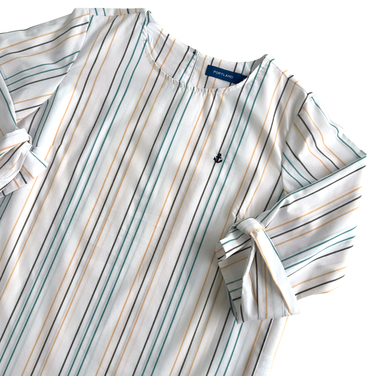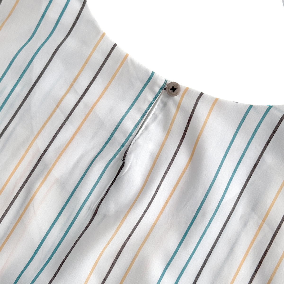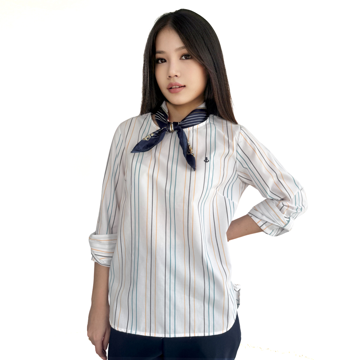 3/4 Sleeves Detail Stripe Top With Embroidery ( 50% Cotton, 50% Rayon) (White)
