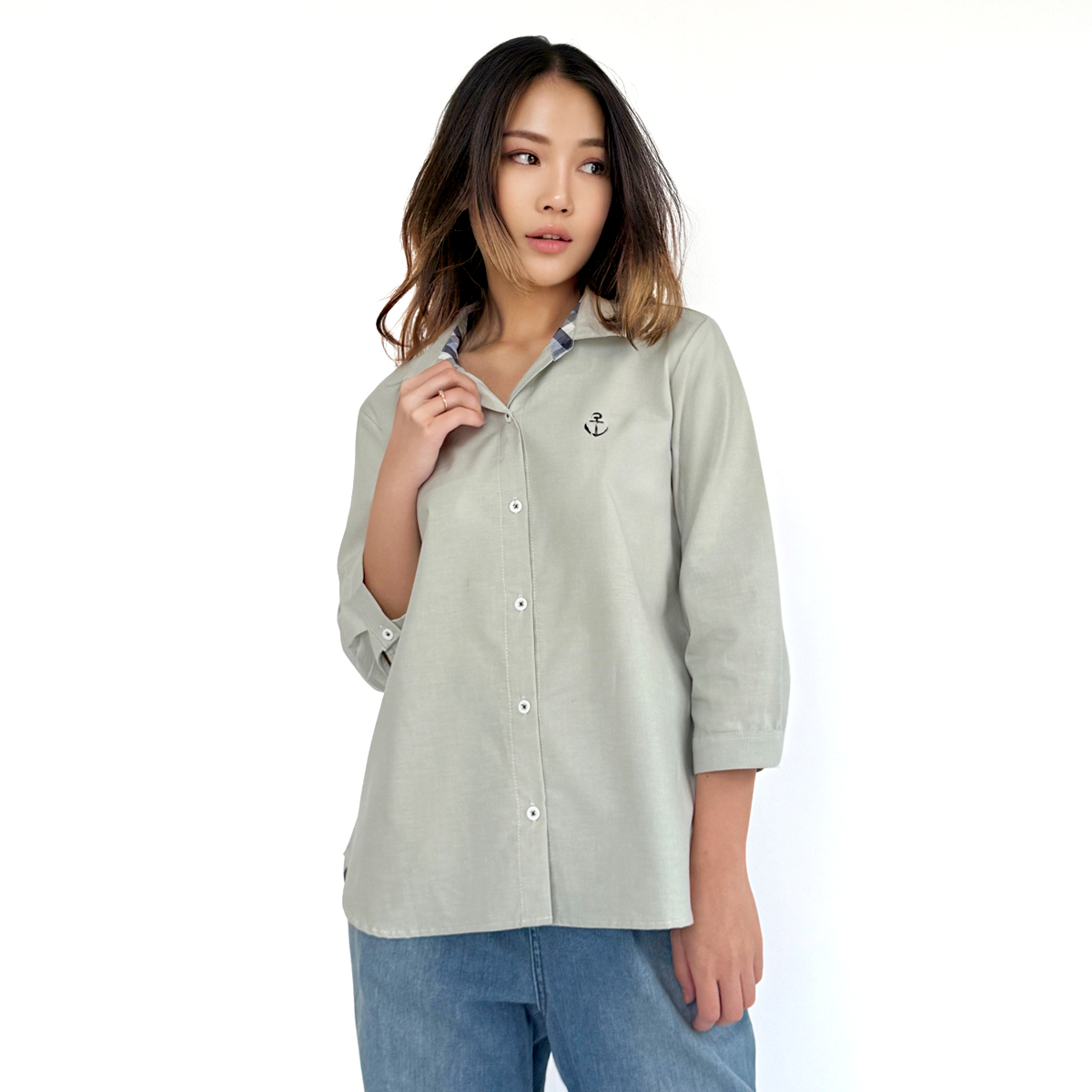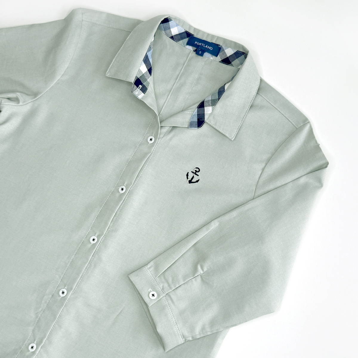3/4 Sleeves Shirt with Anchor Embroidery (55% Cotton, 45% Polyester) (Green)