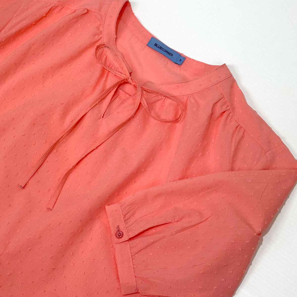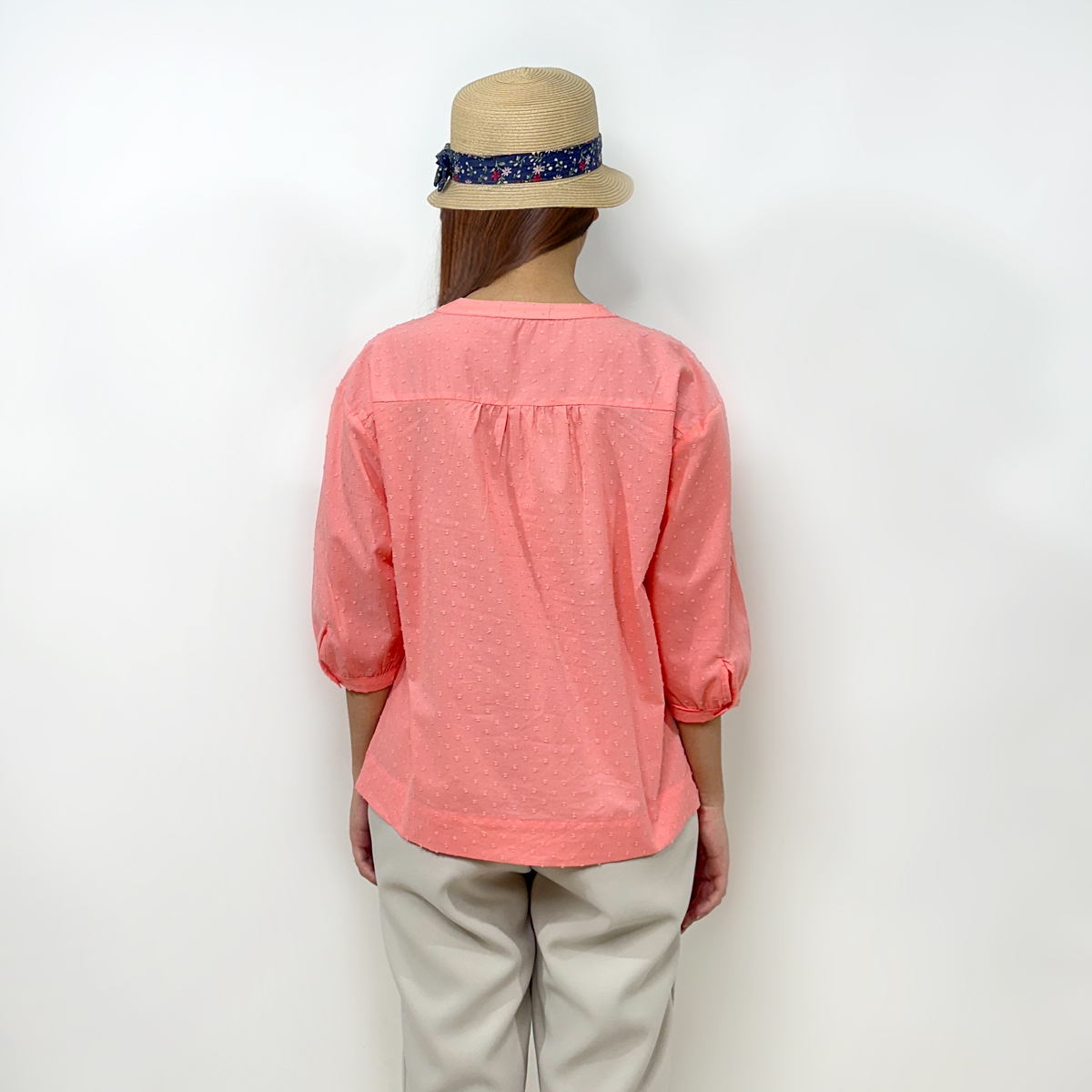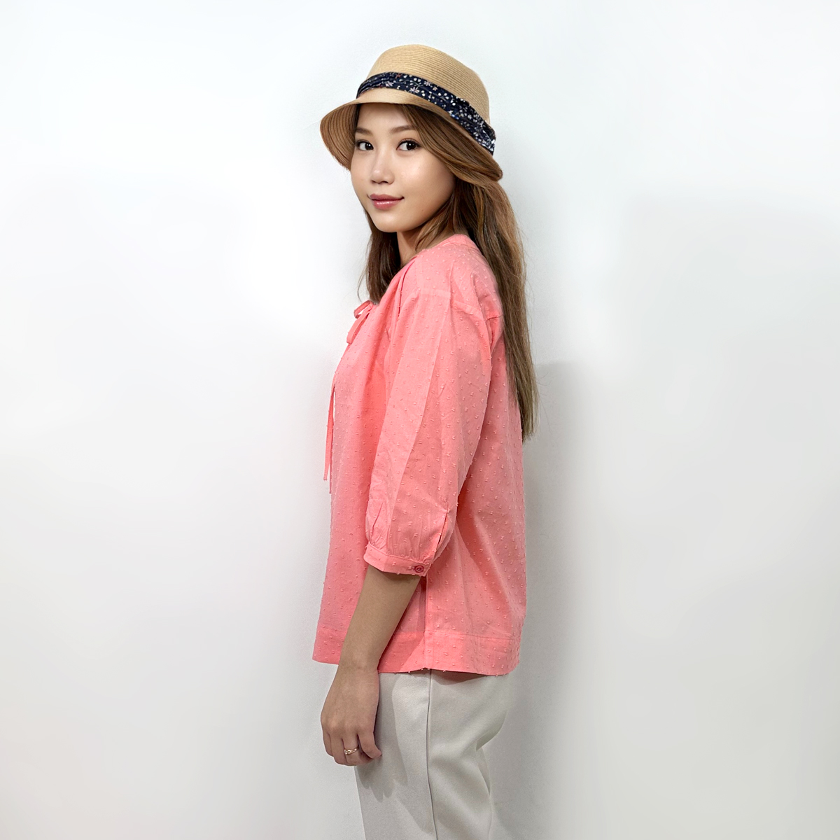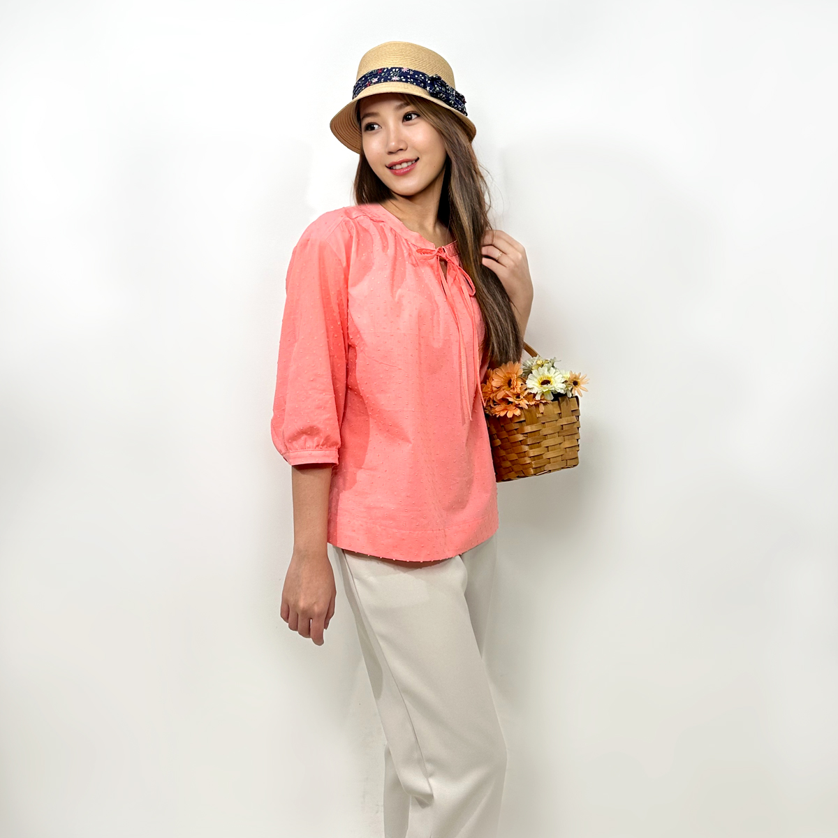 3/4 Sleeves with Bow Tie Neck Blouse (55% Cotton, 45% Polyester) (Old Rose)