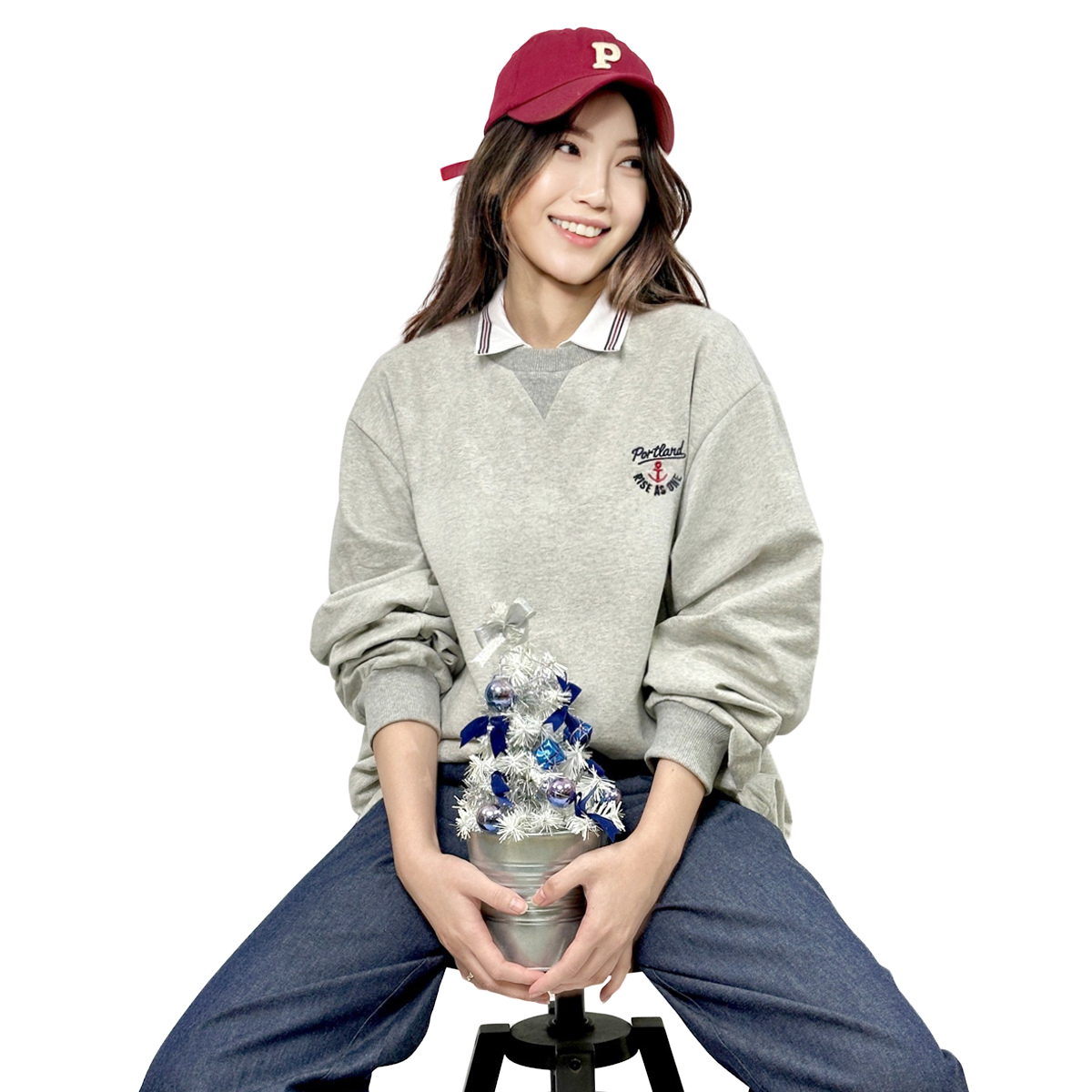 Embroidered Sweatshirt (55% Cotton, 45% Polyester) (Grey)