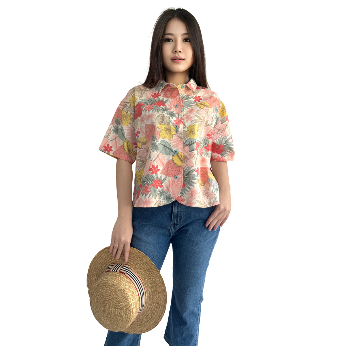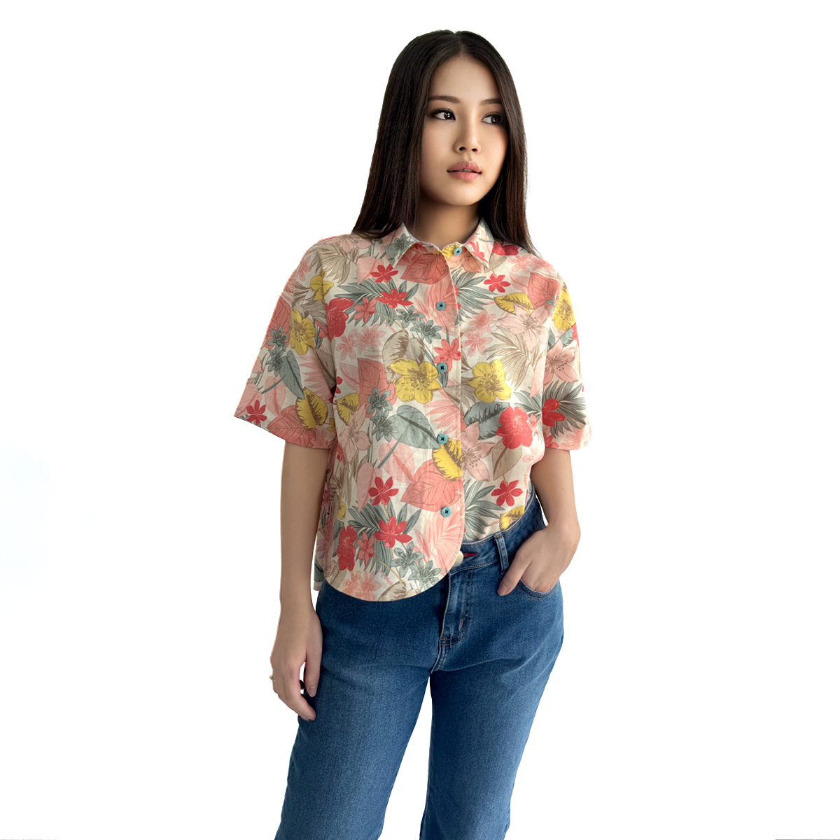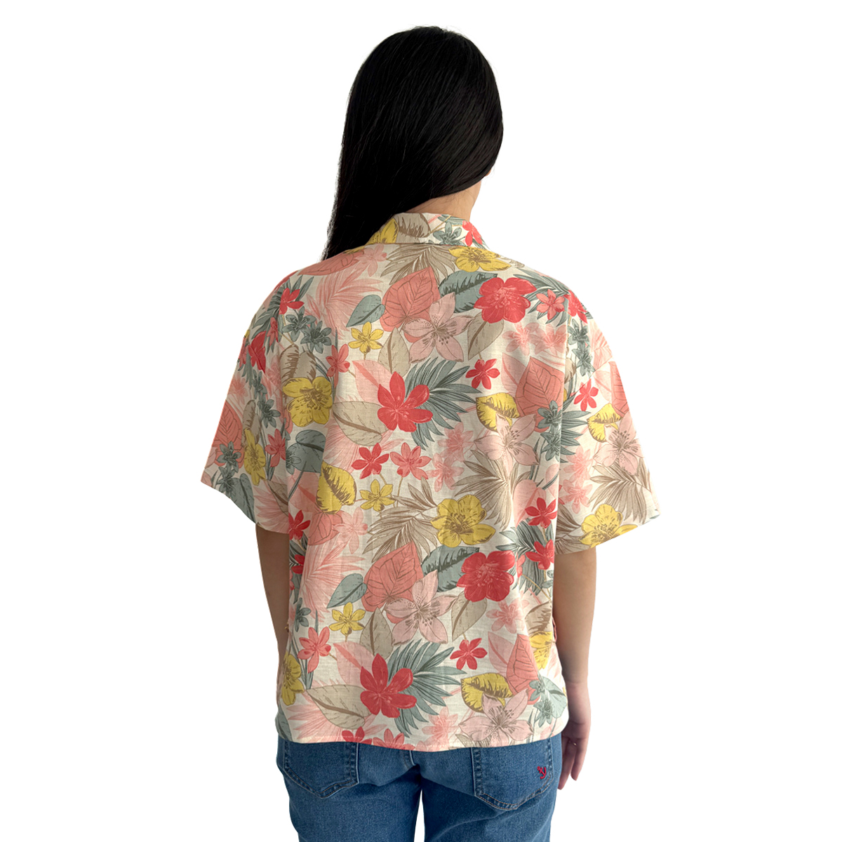 Floral Short Sleeve Shirt (50% Cotton, 50% Rayon) (Old Rose)