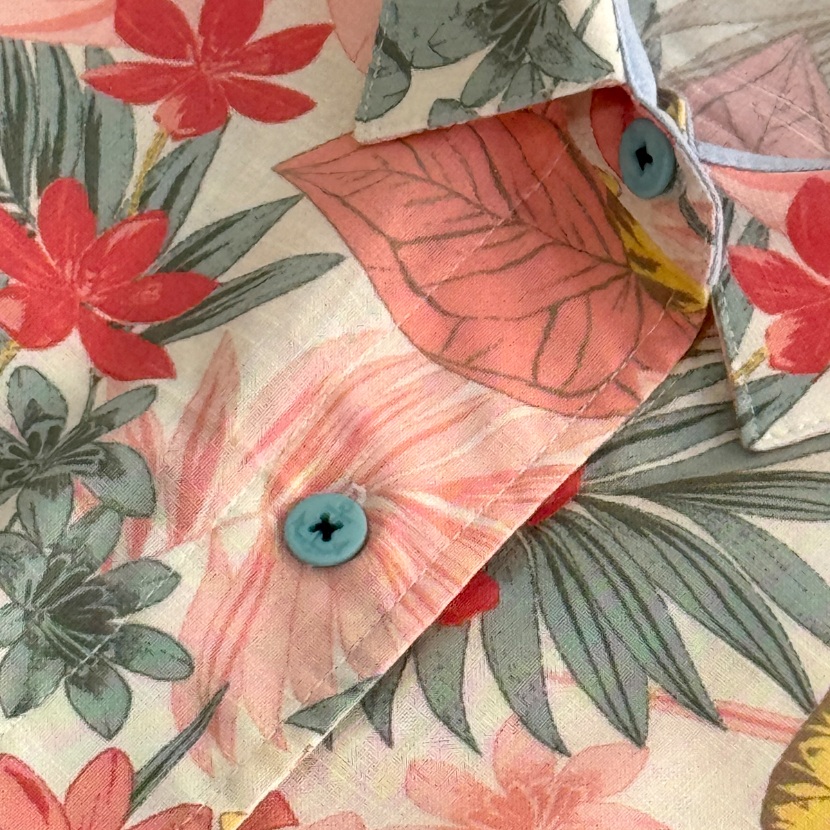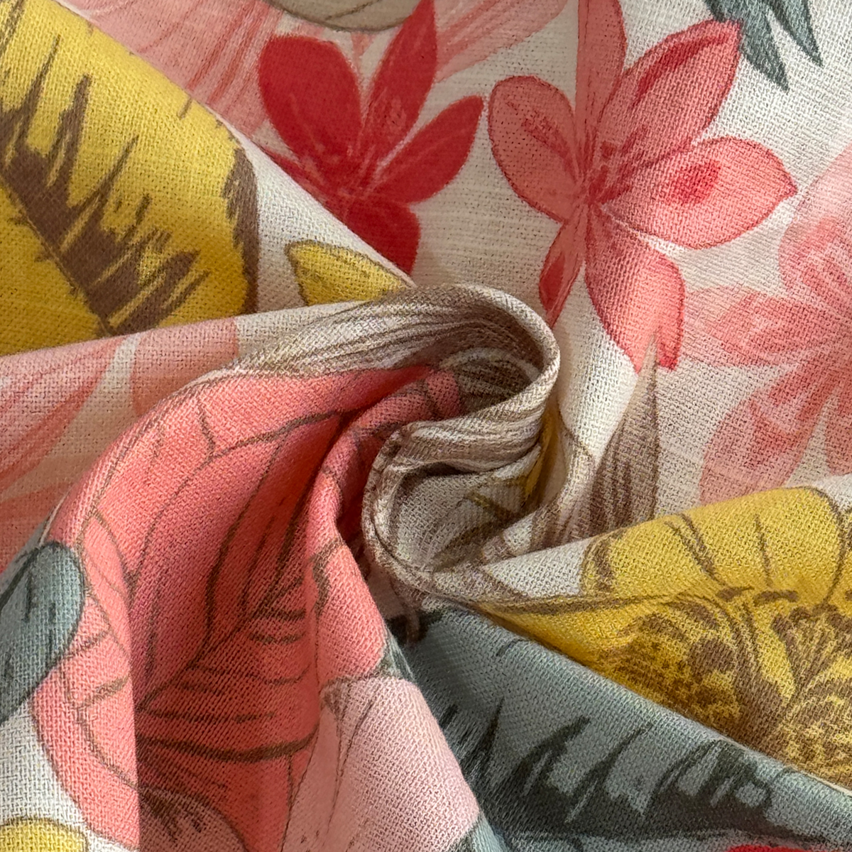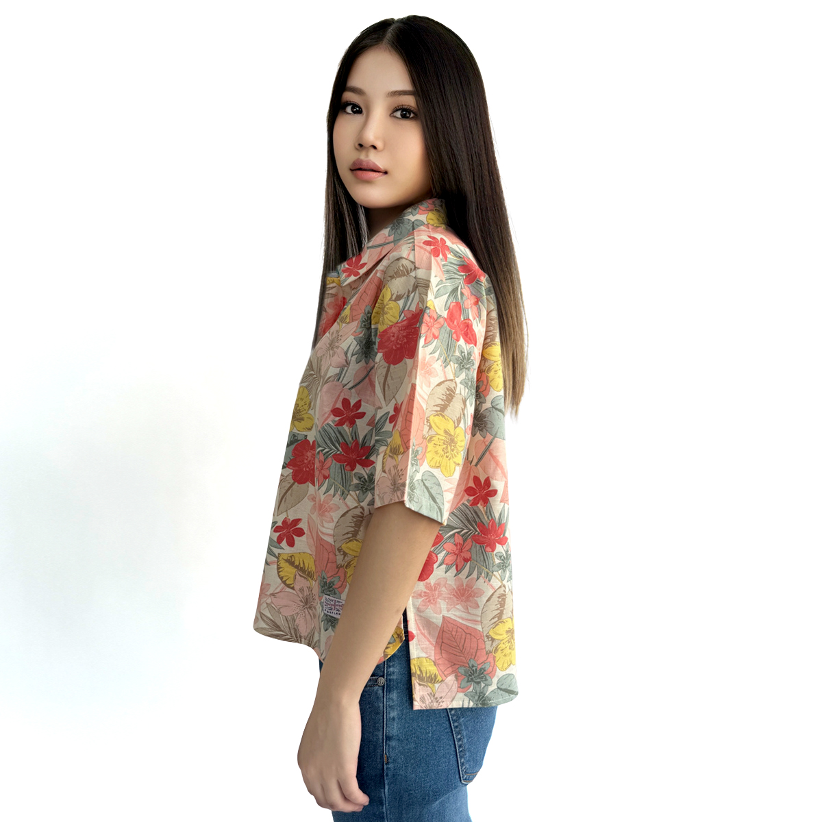 Floral Short Sleeve Shirt (50% Cotton, 50% Rayon) (Old Rose)