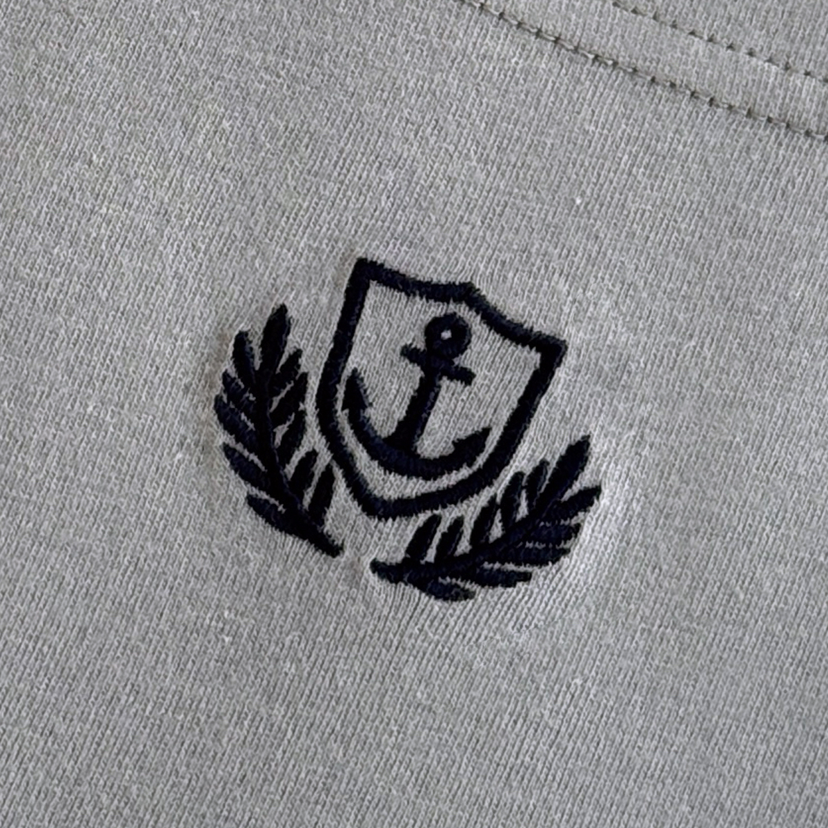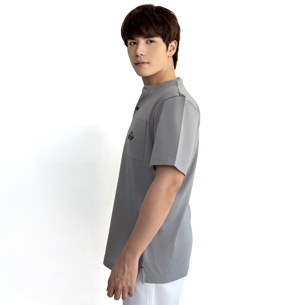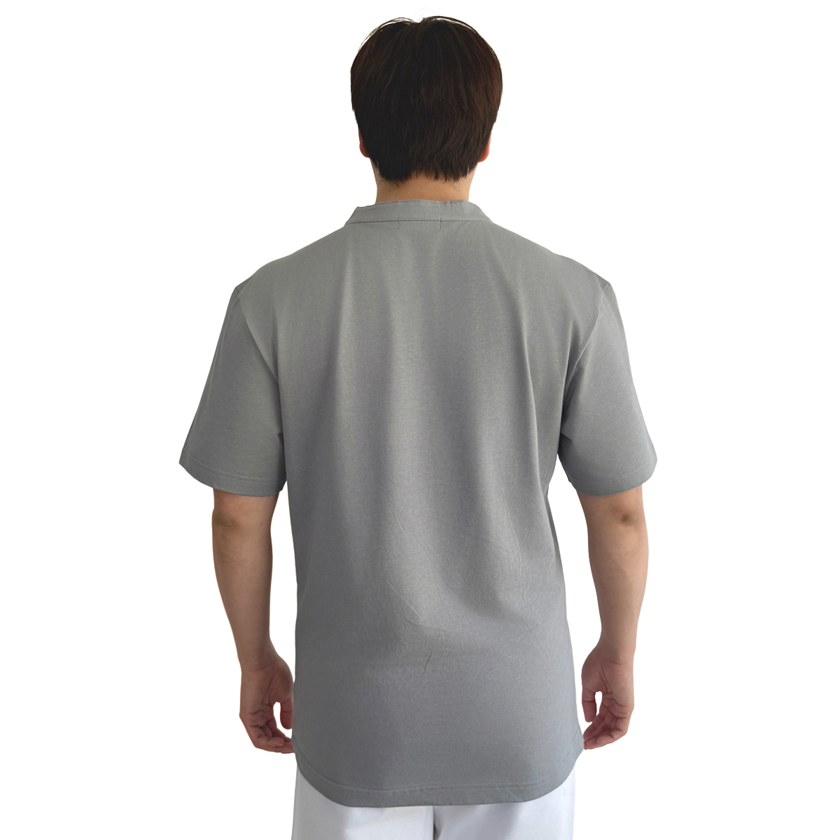 Henley Neck T-Shirt with Embroidery (50% Cotton, 50% Rayon) (Grey)
