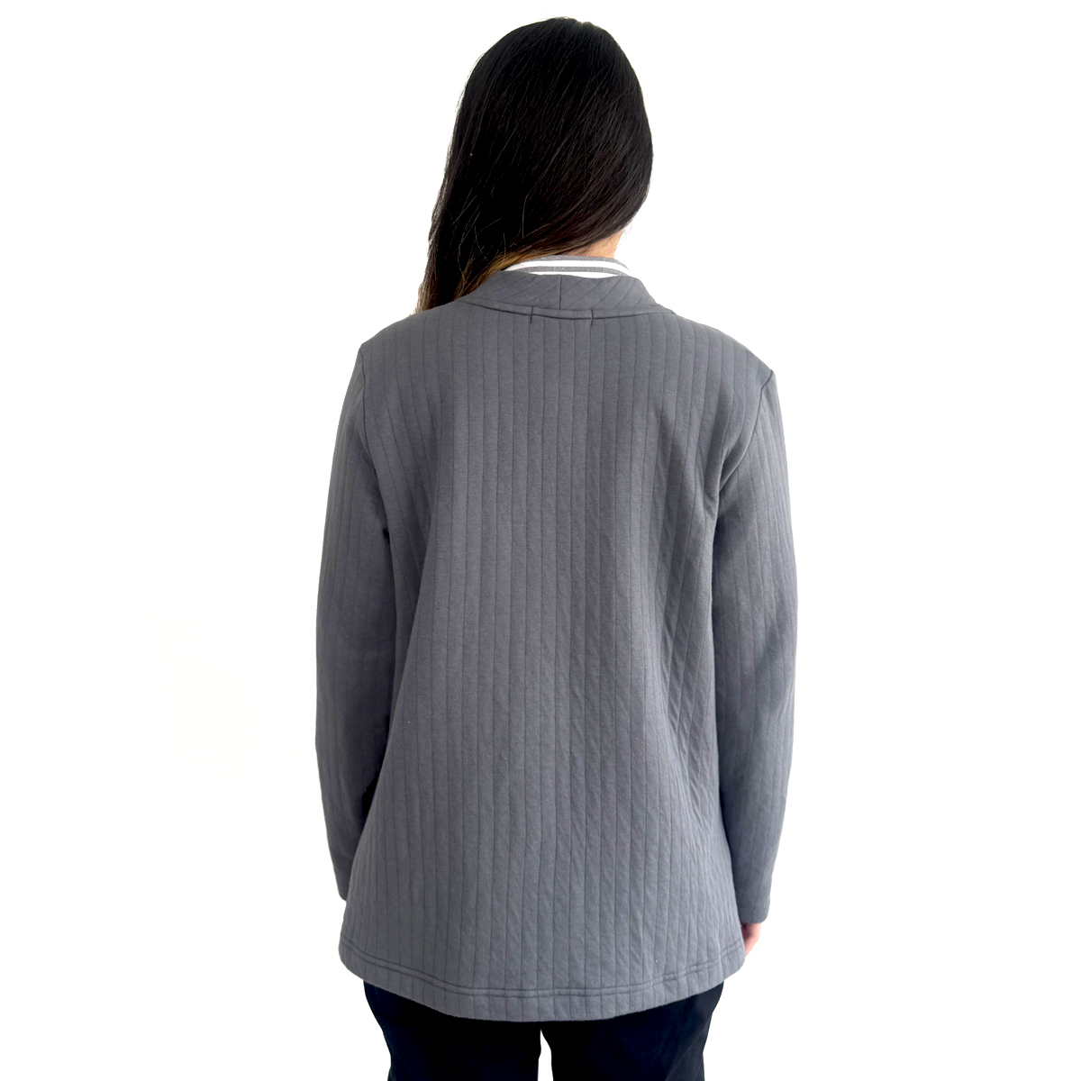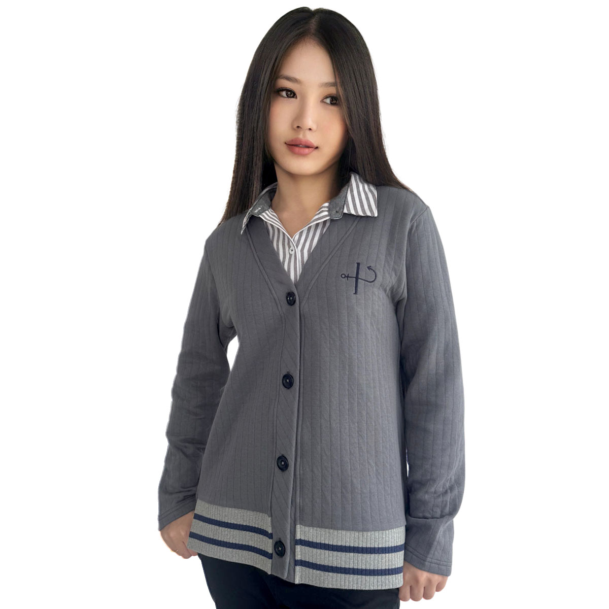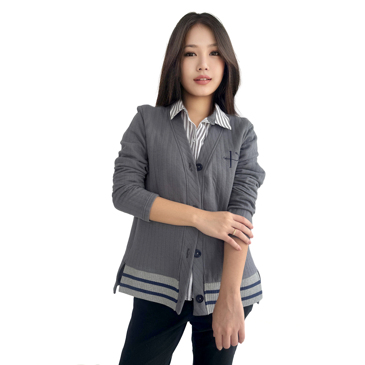 Long Sleeves Cardigan with Details (50% Cotton, 50% Rayon) (Grey)