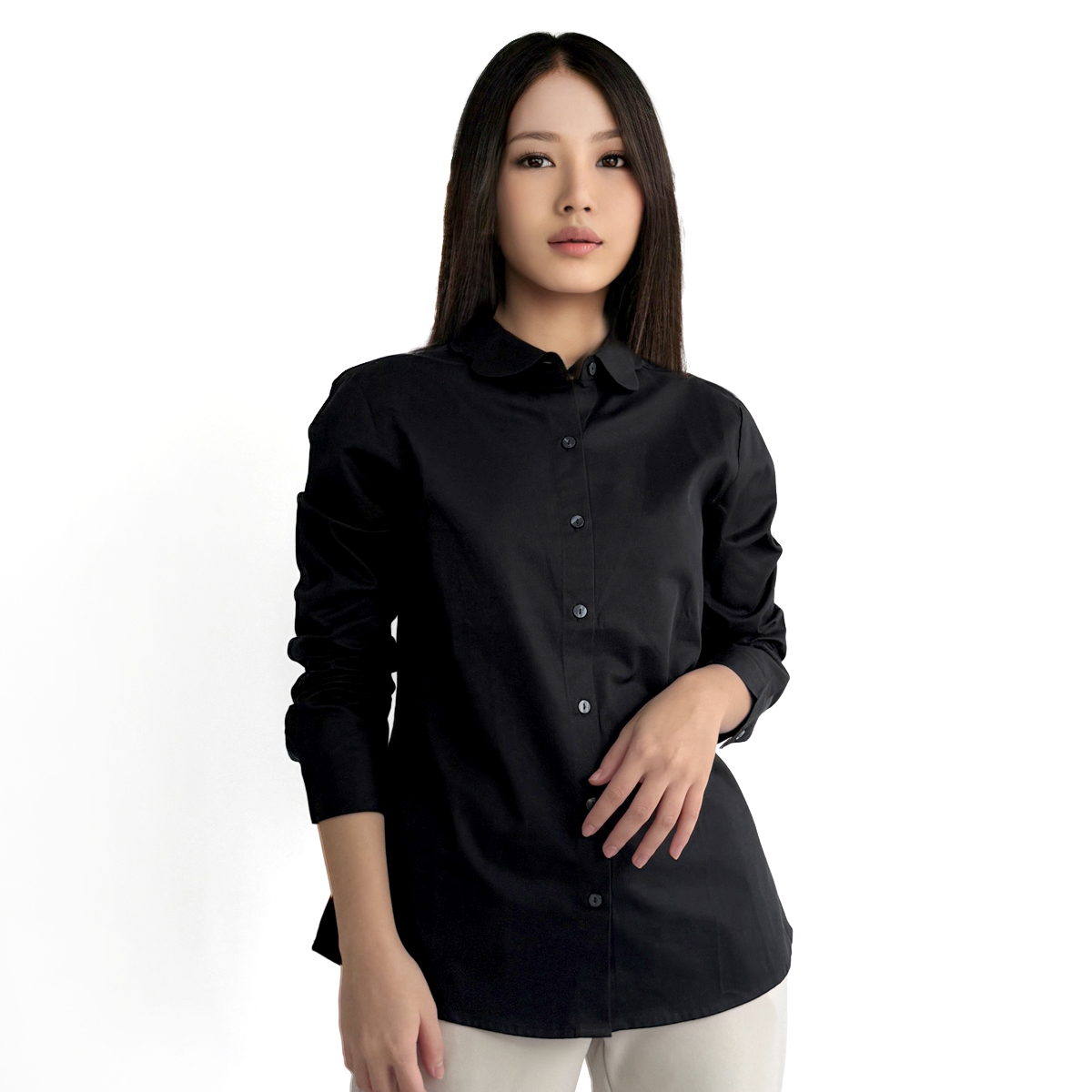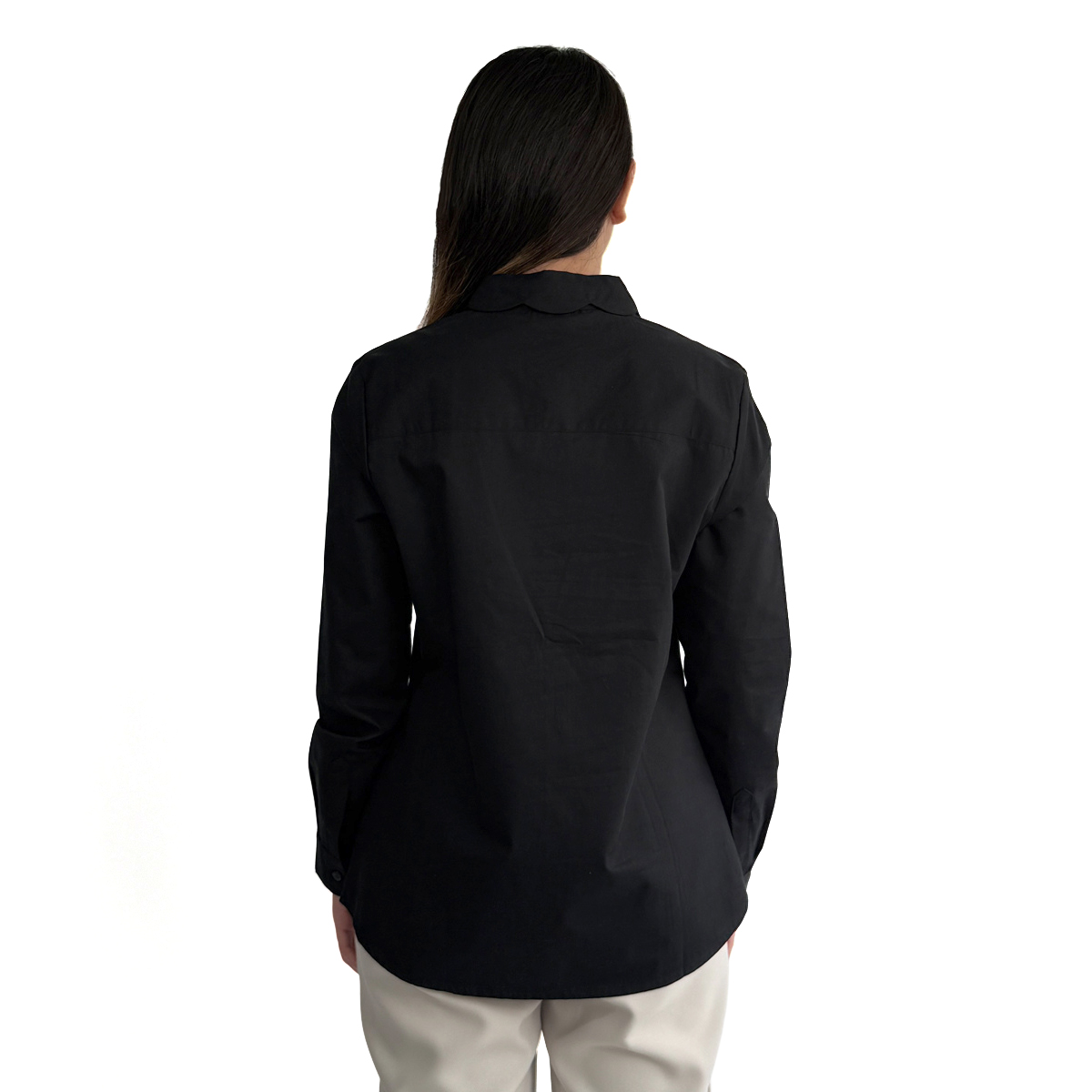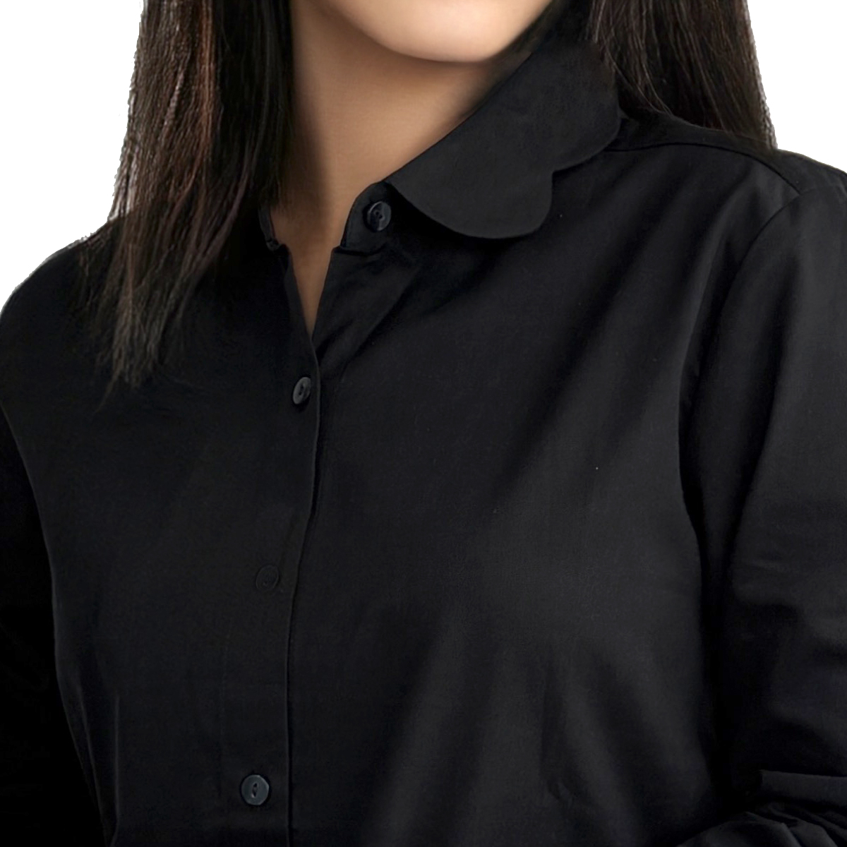 Long Sleeves Shirt With Collar Detail (100% Cotton) (Black)