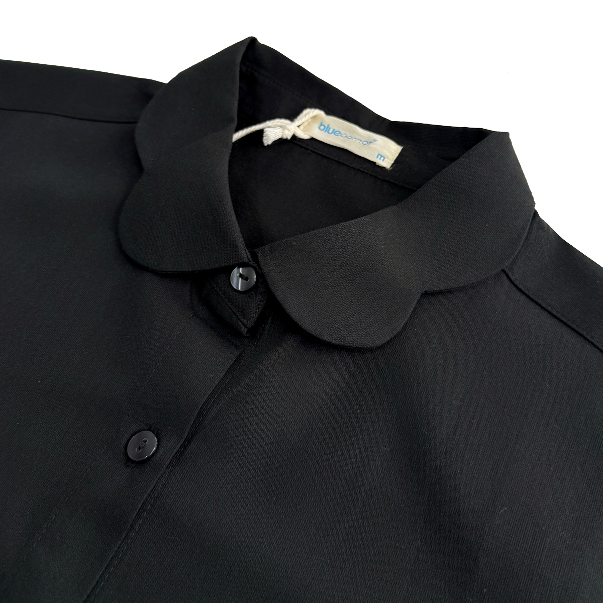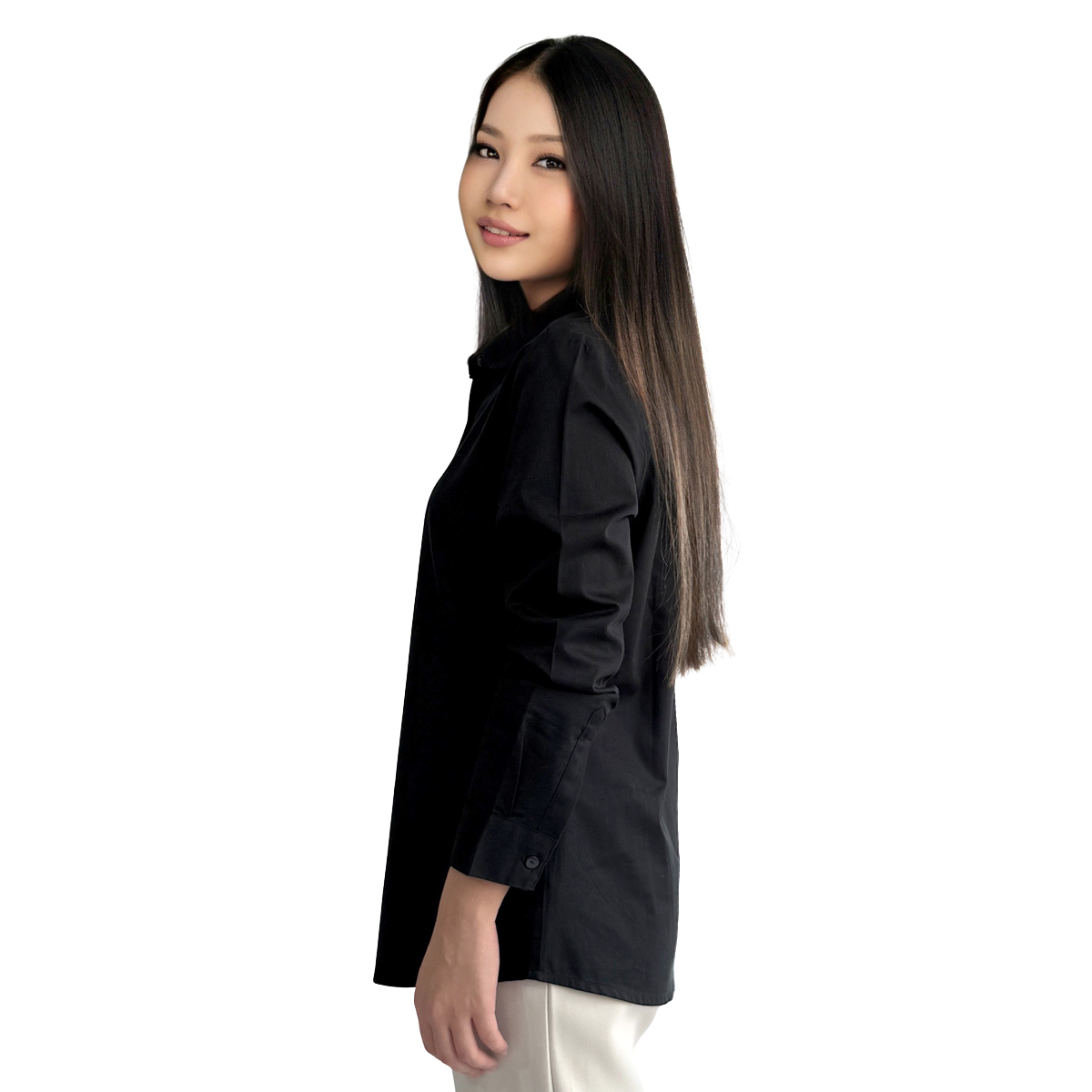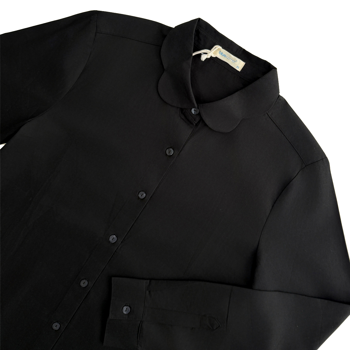 Long Sleeves Shirt With Collar Detail (100% Cotton) (Black)