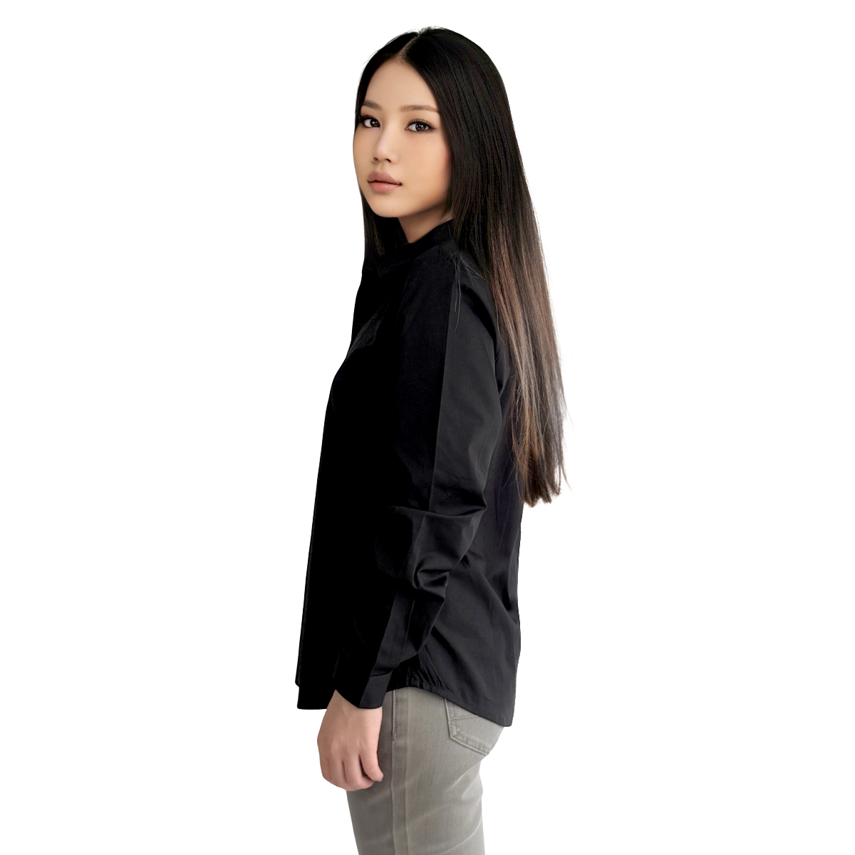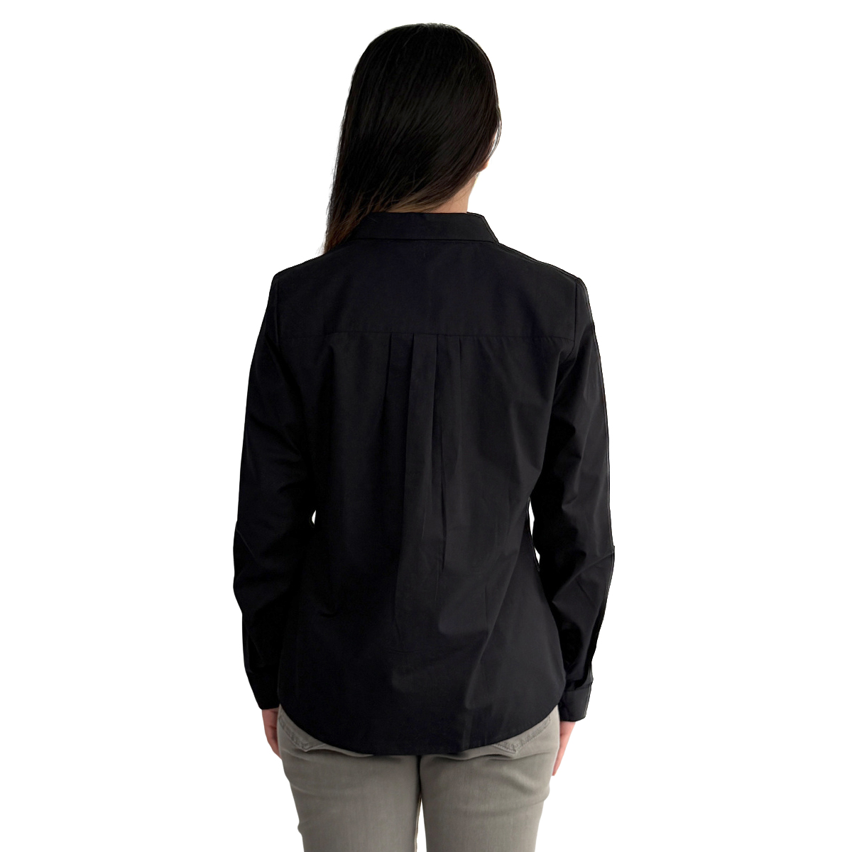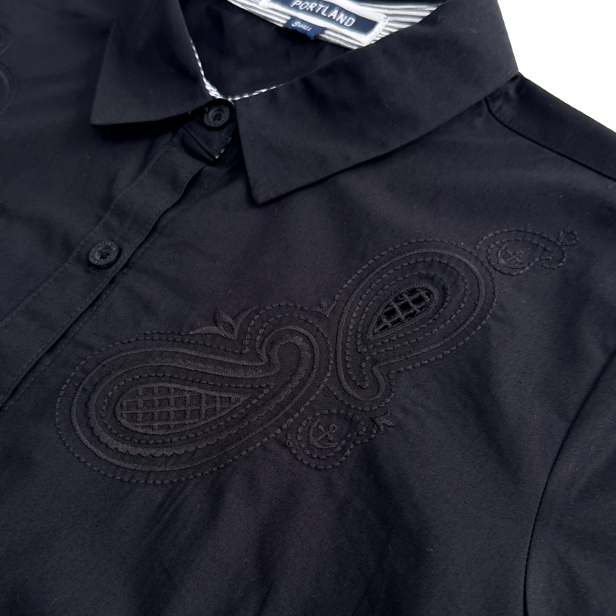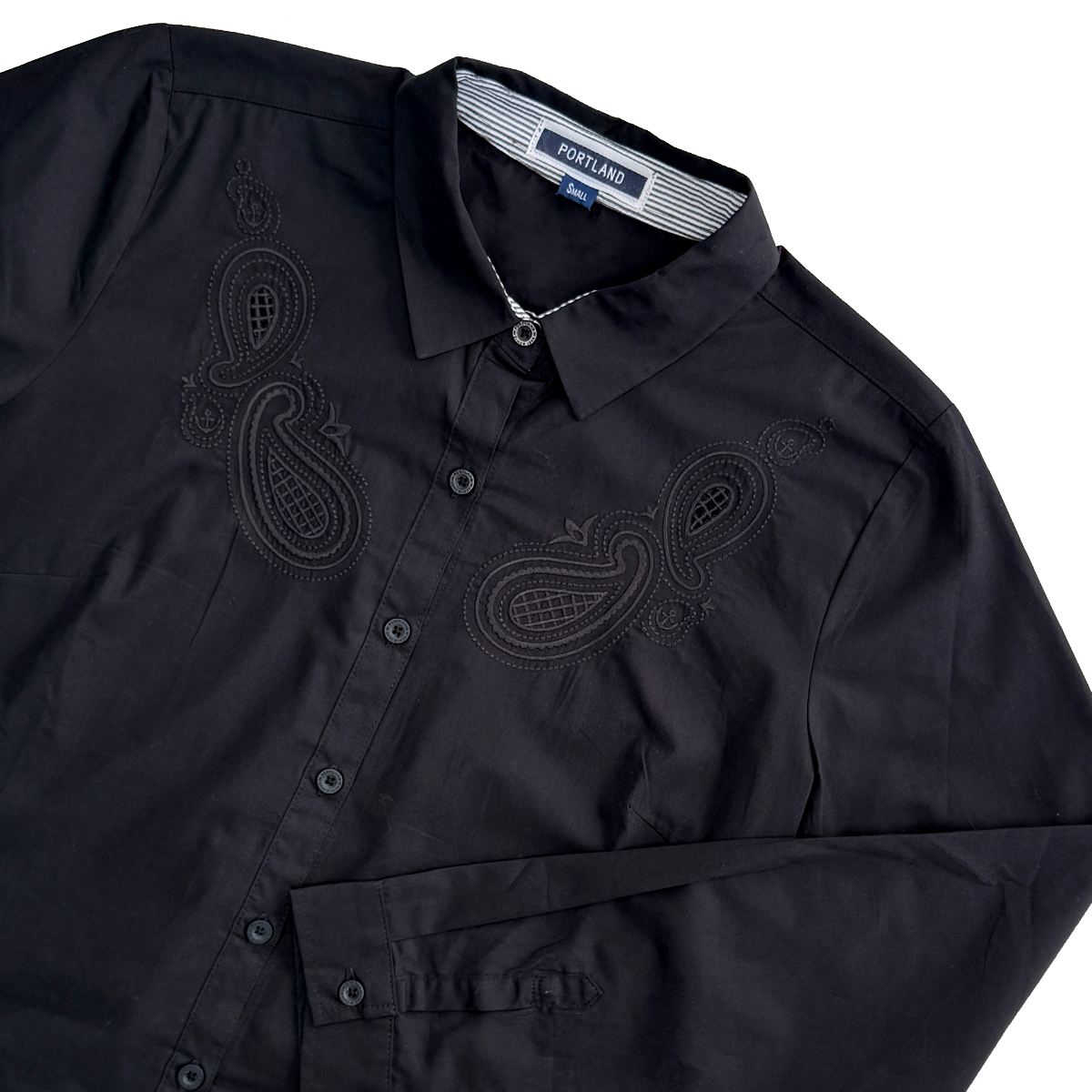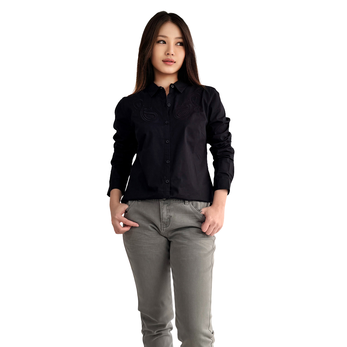 Long Sleeves Shirt with Embroidery Detail (100% Cotton) (Black)