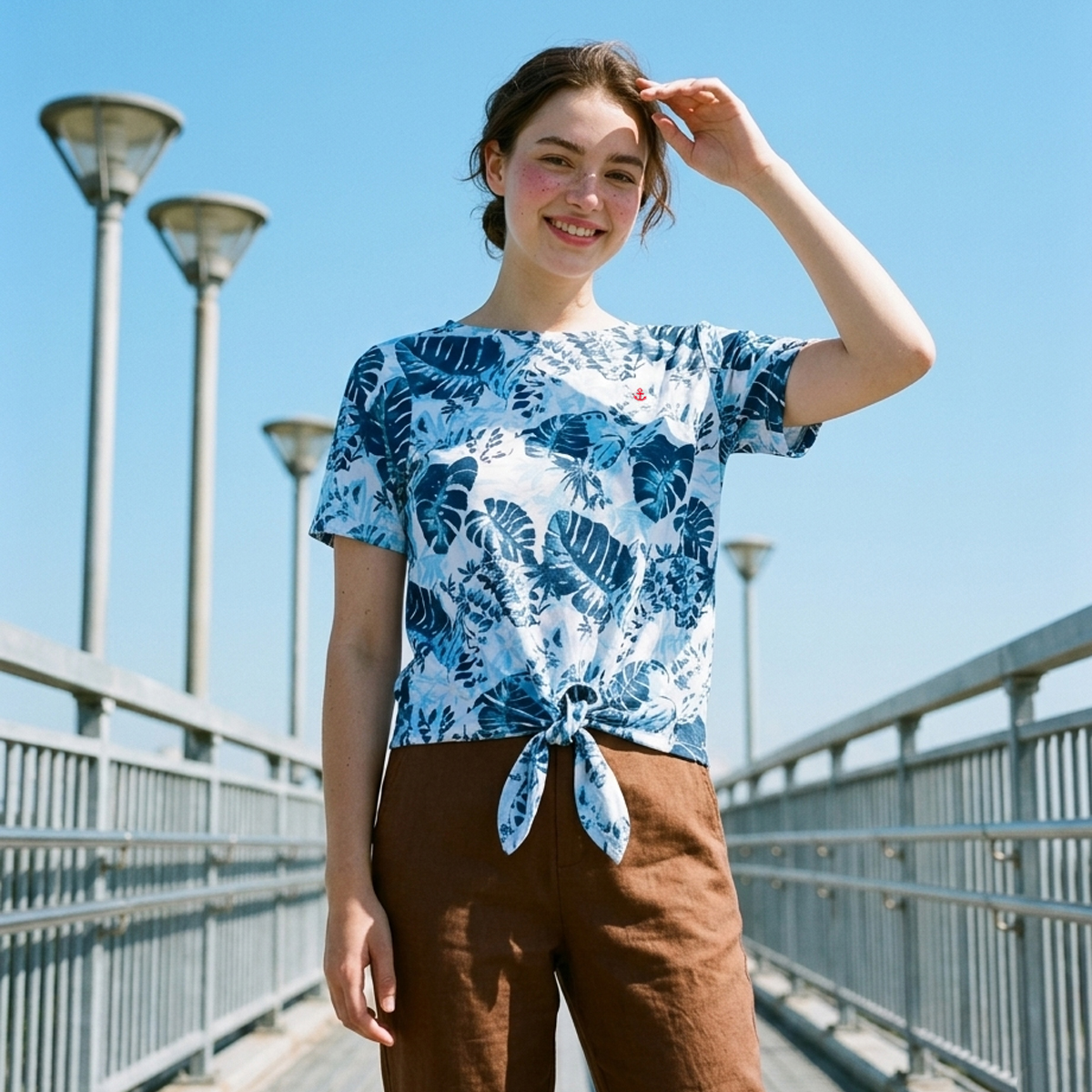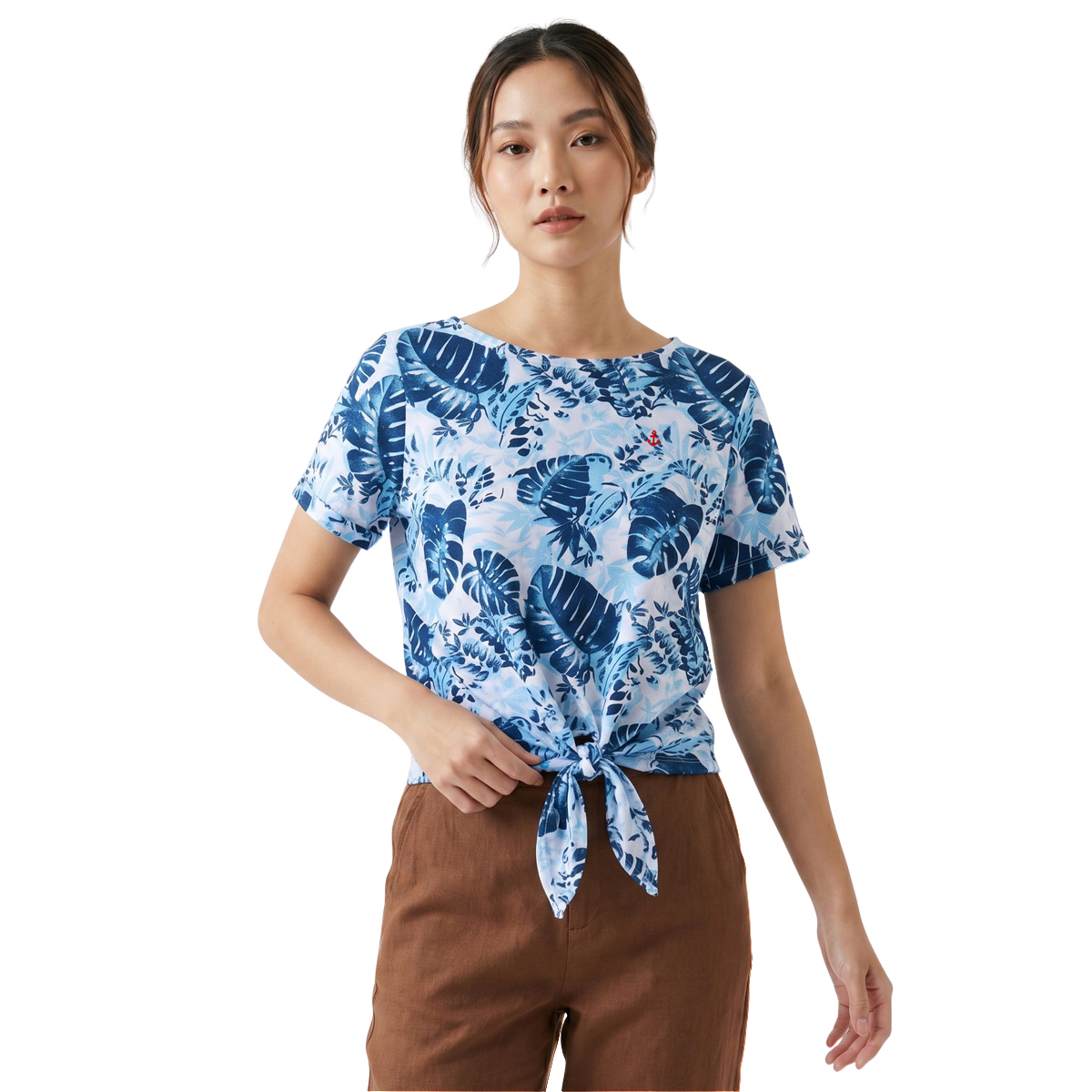 Nautical Leaf Knotted T-Shirt (100% Polyester) (Blue)