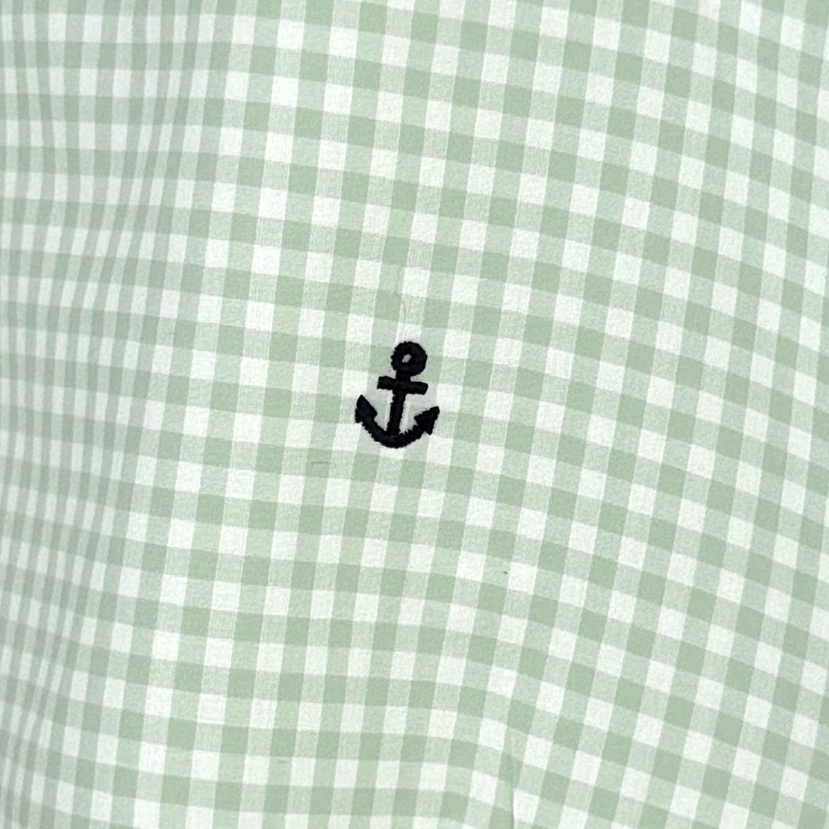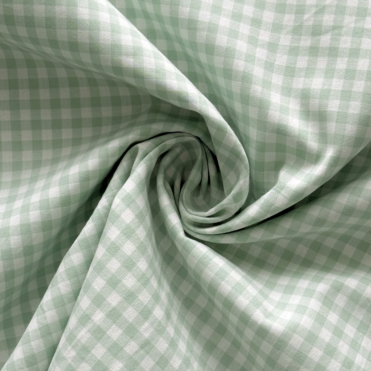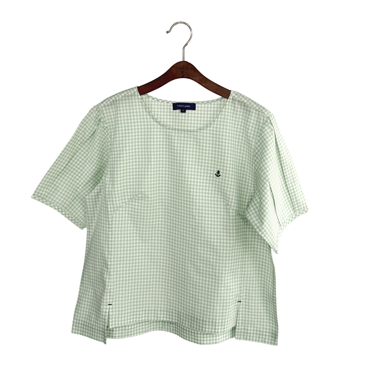Puff Sleeve Plaid Blouse (55% Cotton, 45% Polyester) (Green)