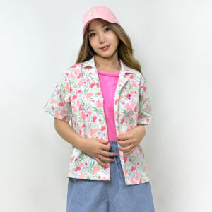 Short Sleeve Montage Blouse (55% Cotton, 45% Polyester) (White)