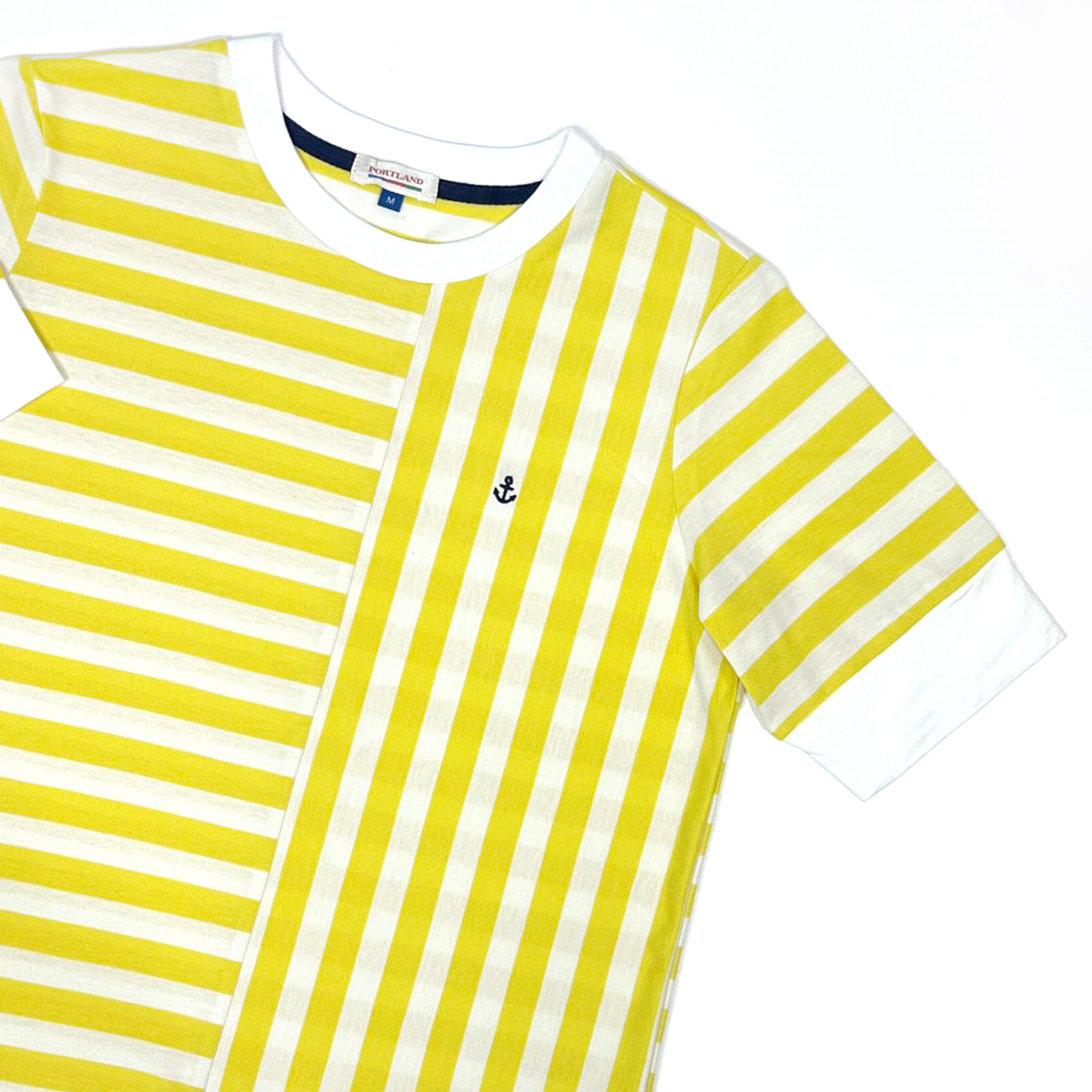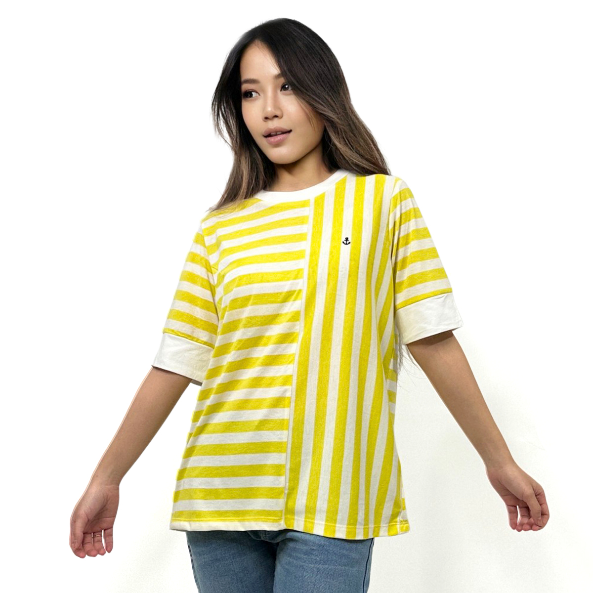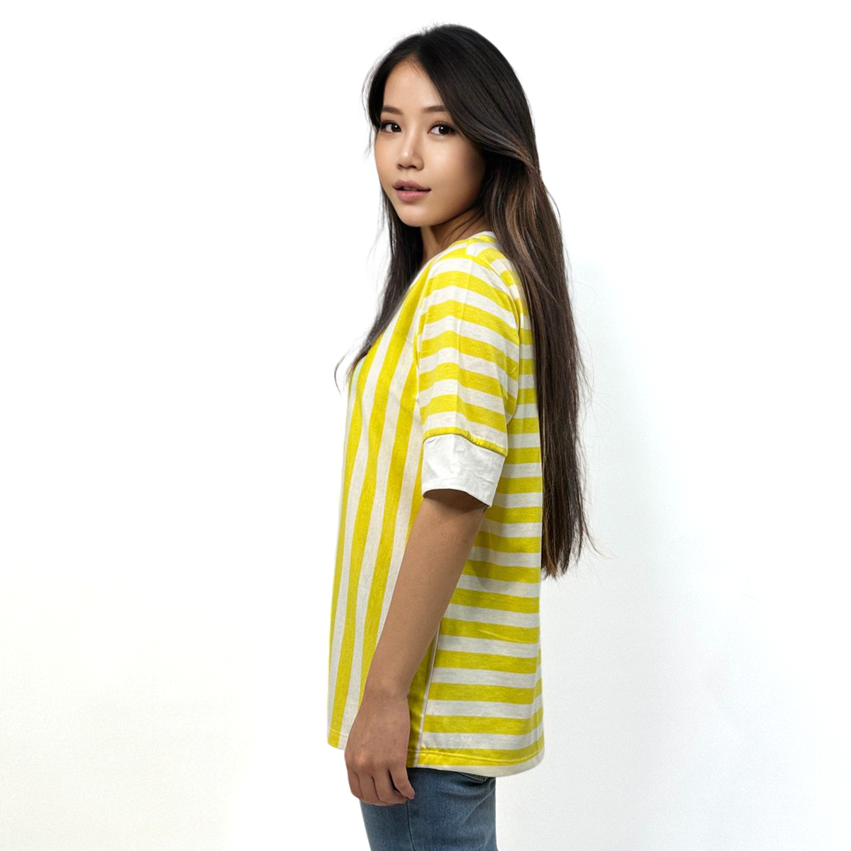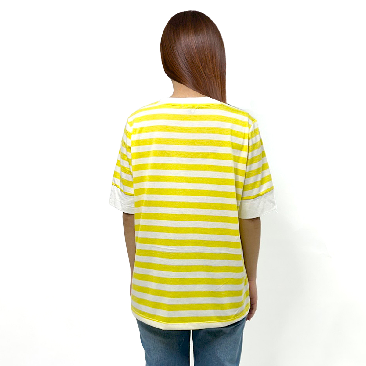Short Sleeves Mixed Striped T-Shirt (100% Cotton) (Yellow)