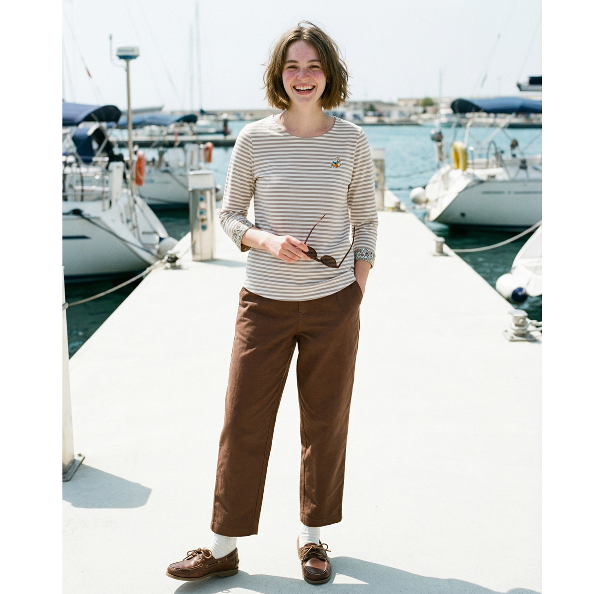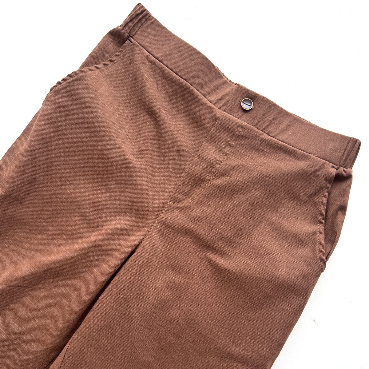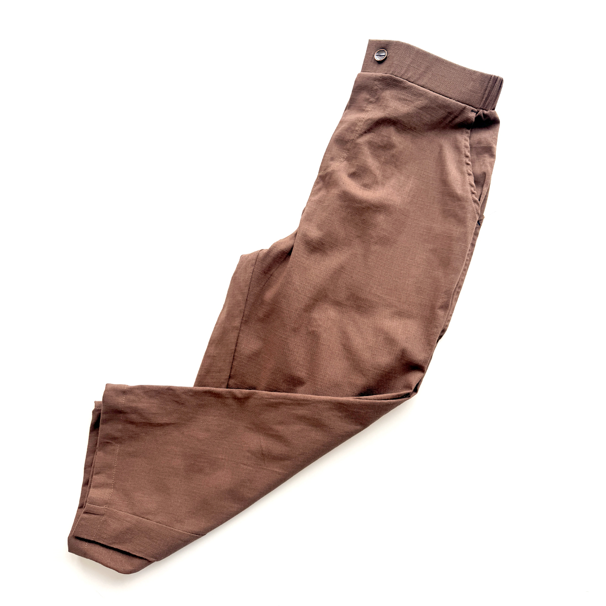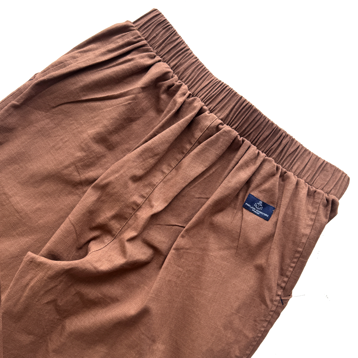 Slim-Straight Linen Cropped Trousers (Cotton 70% & Linen 30%) (Brown)