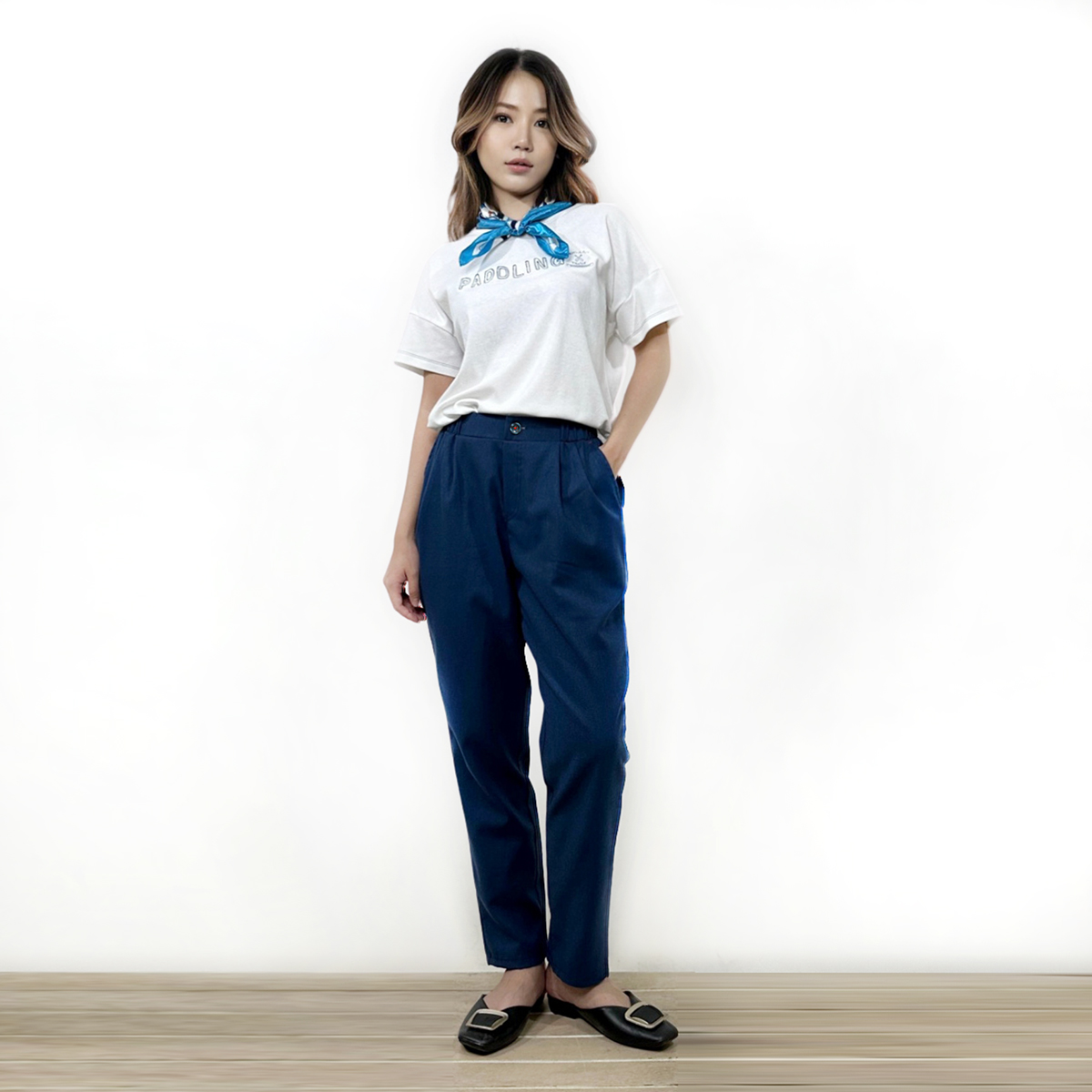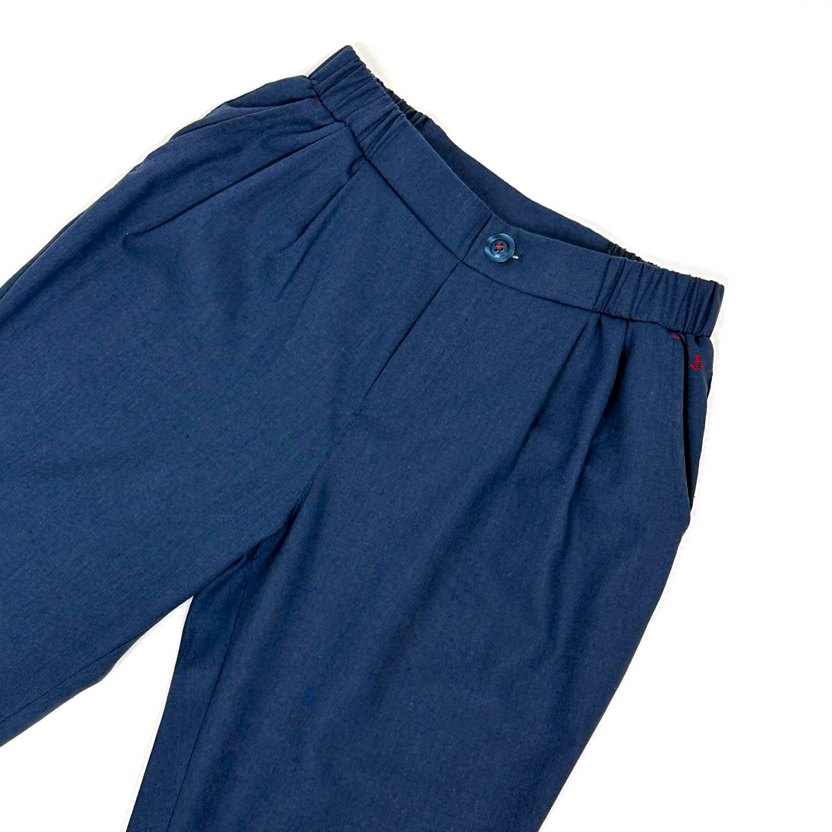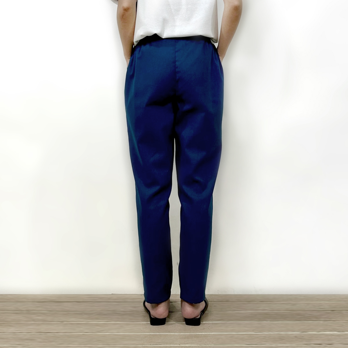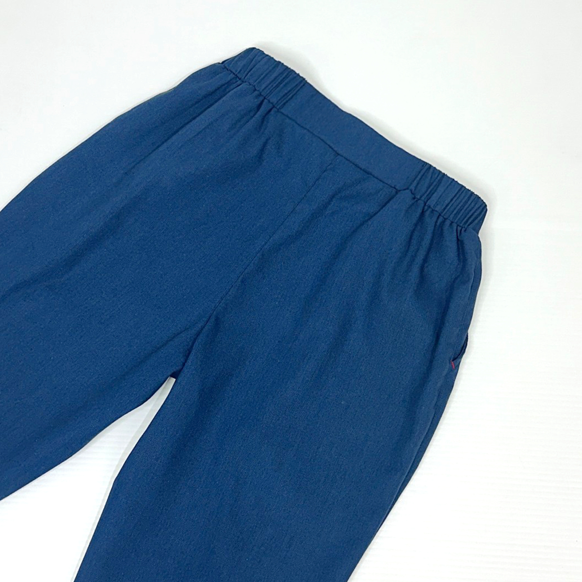 Smocked Waist Linen Pants (55% Linen, 45% Cotton) (Navy)