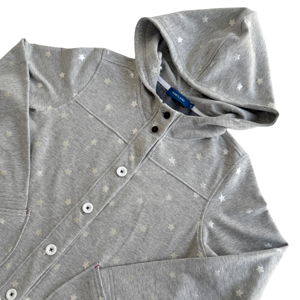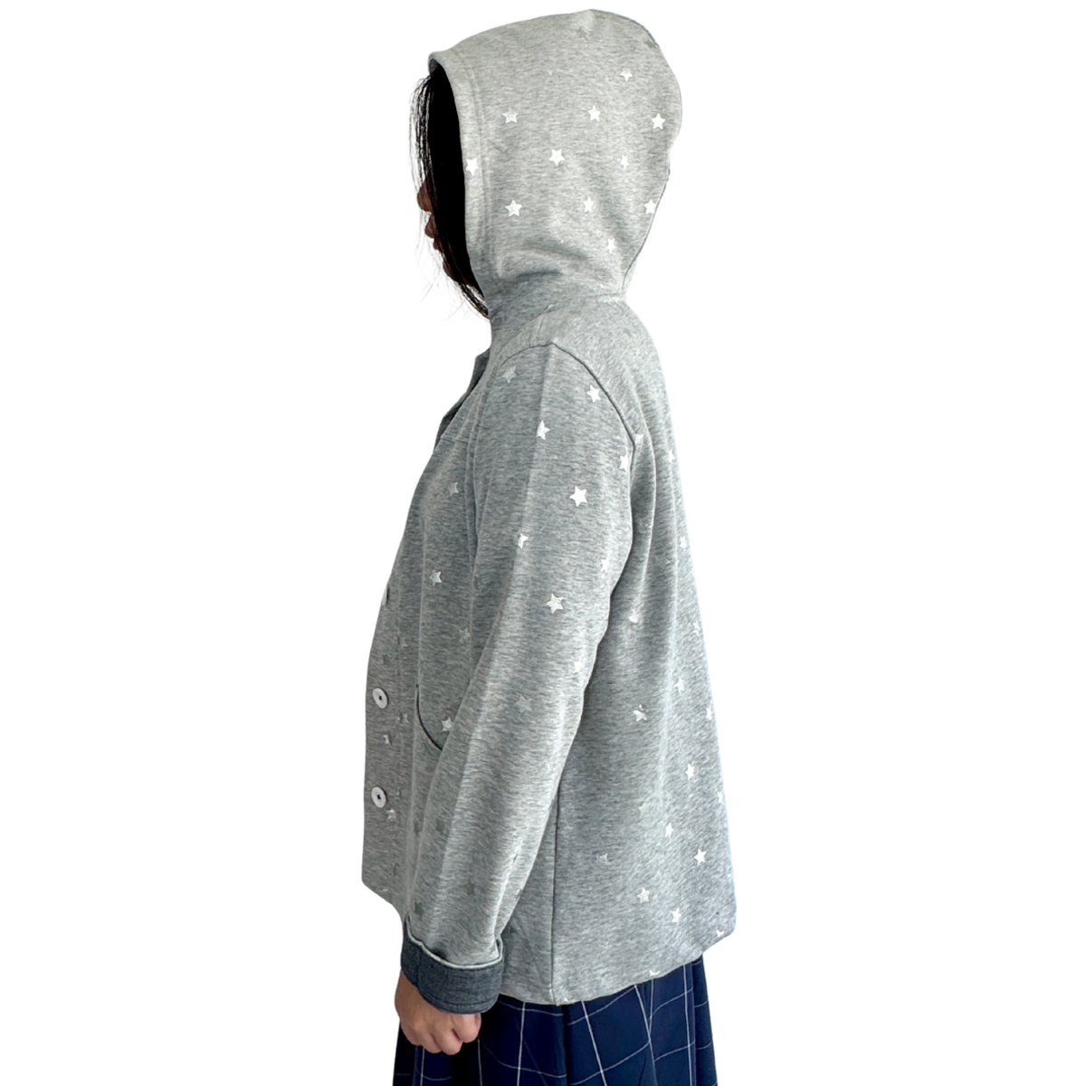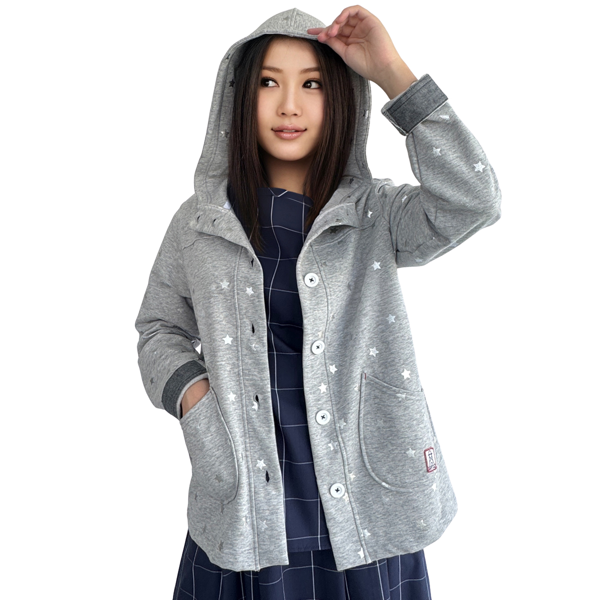 Star Printed Button-Up Hoodie Jacket (50% Cotton, 50% Rayon) (Grey)