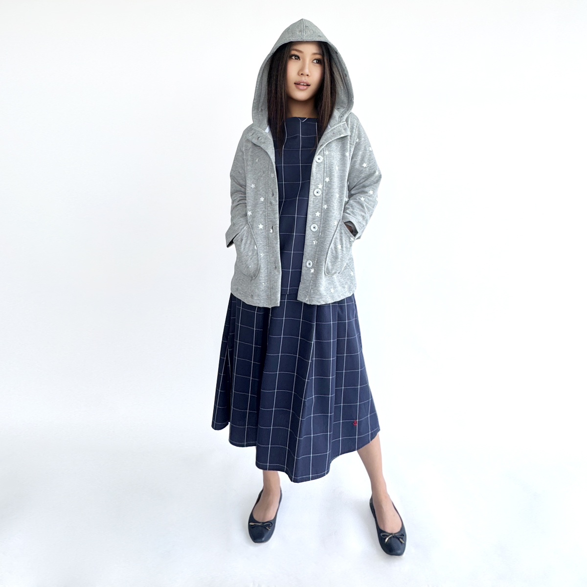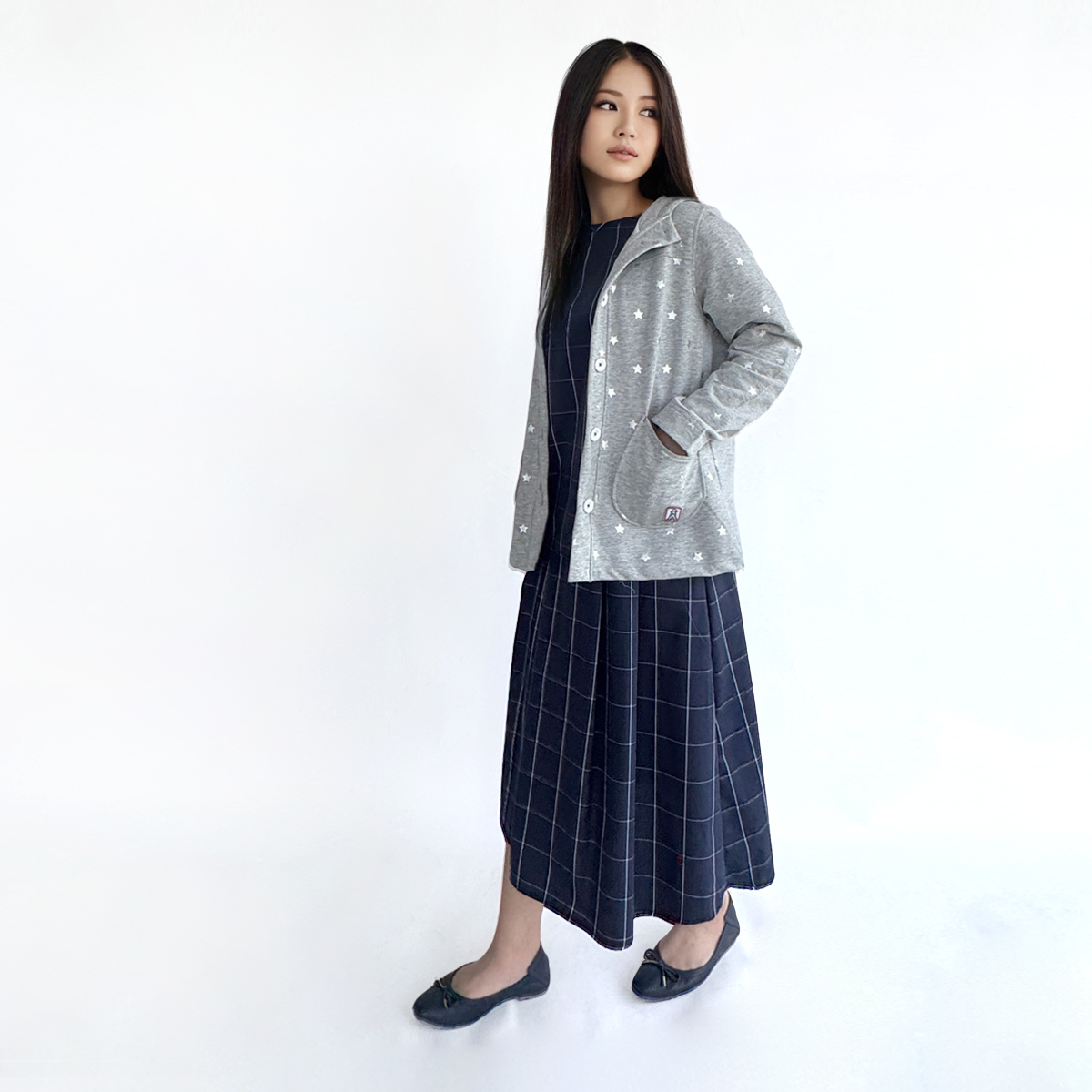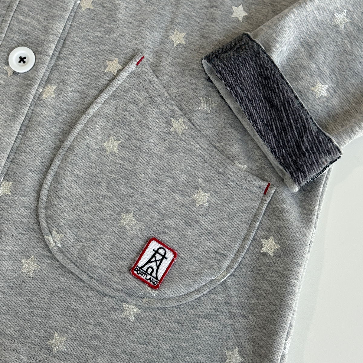 Star Printed Button-Up Hoodie Jacket (50% Cotton, 50% Rayon) (Grey)