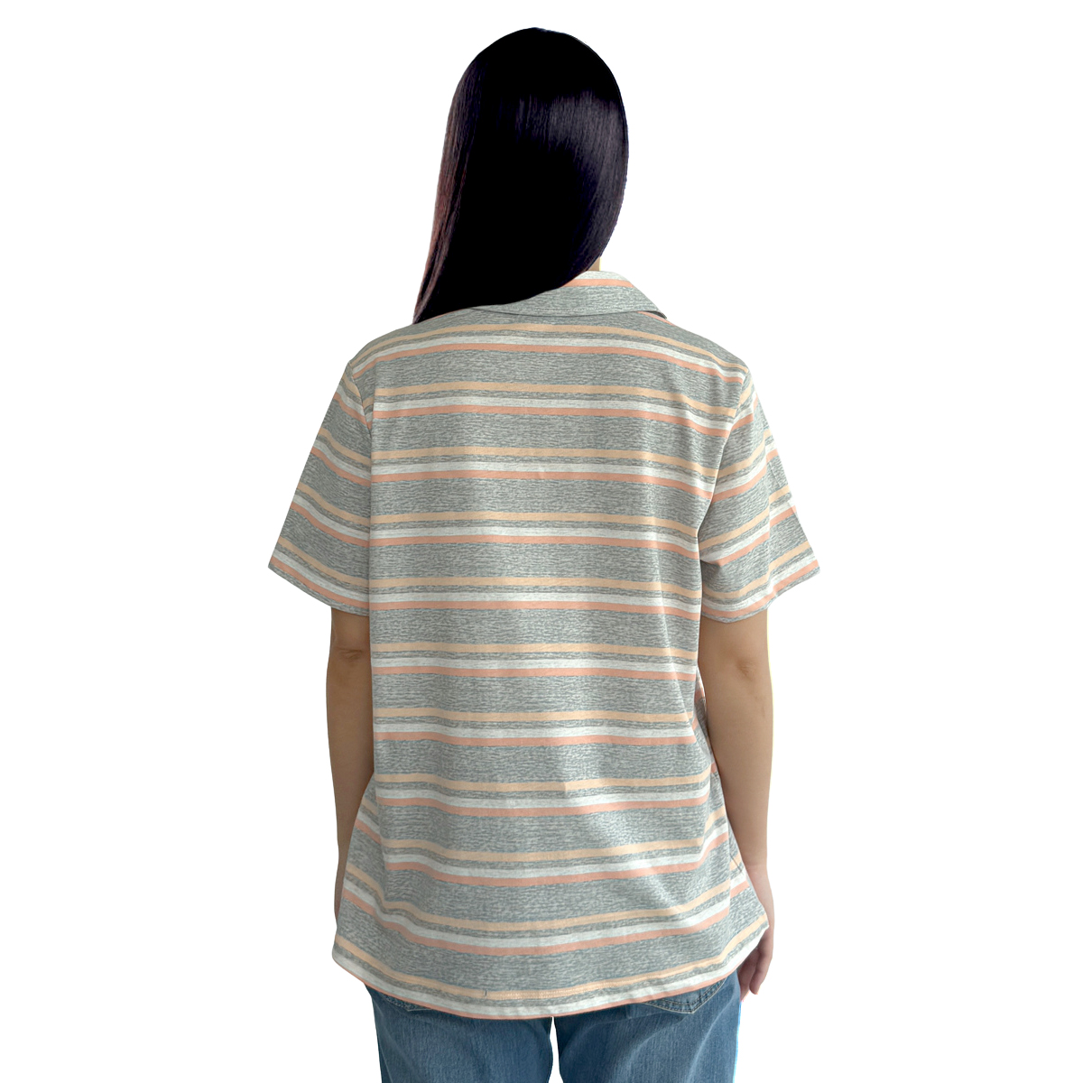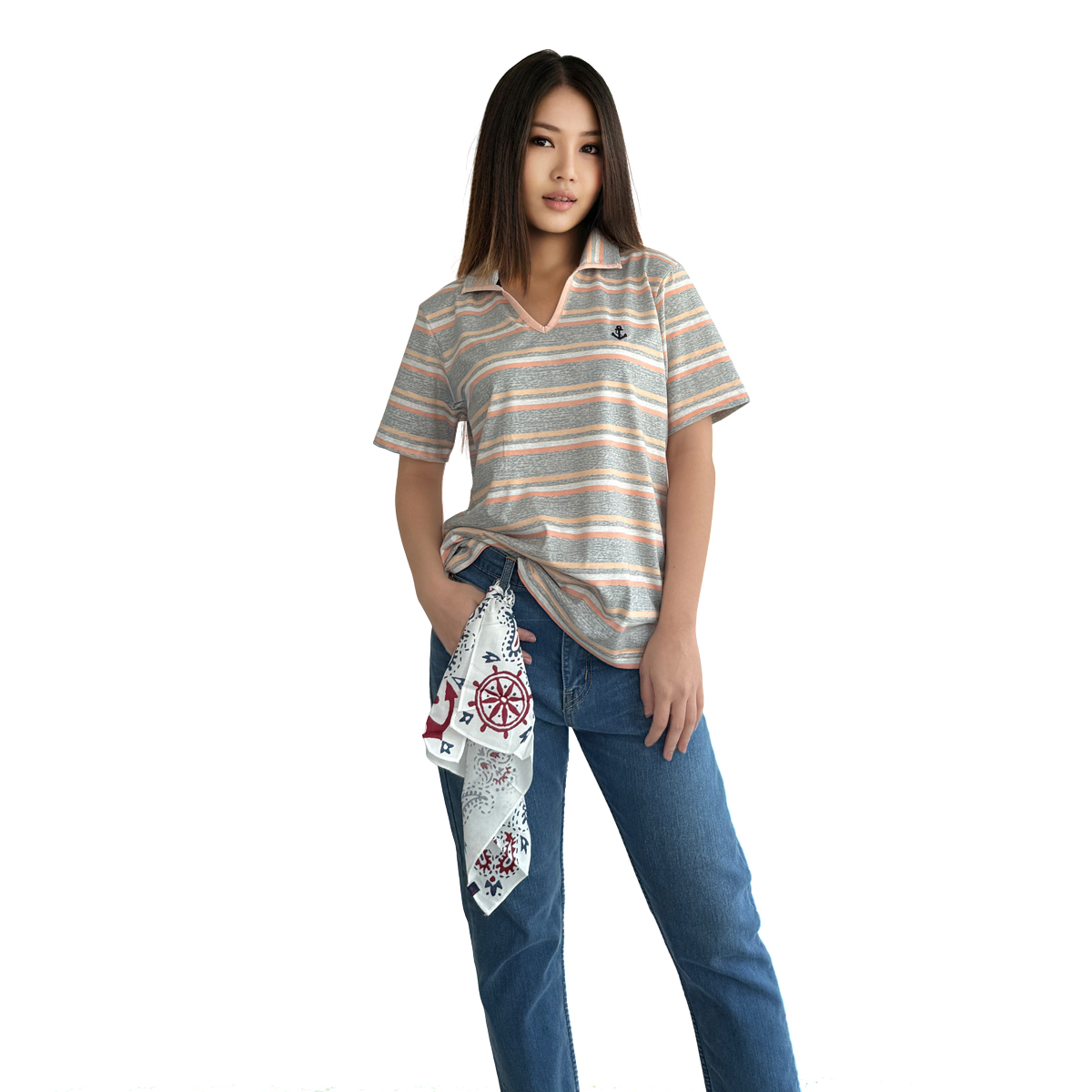 Striped Cotton Blend Polo T-shirt (55% Cotton, 45% Polyester) (Pink)