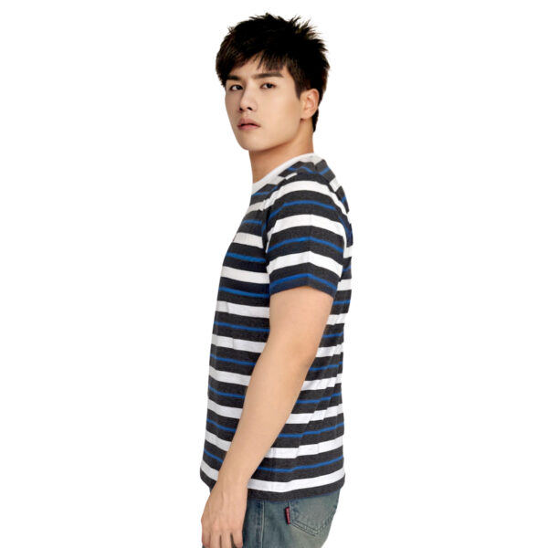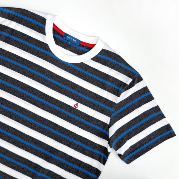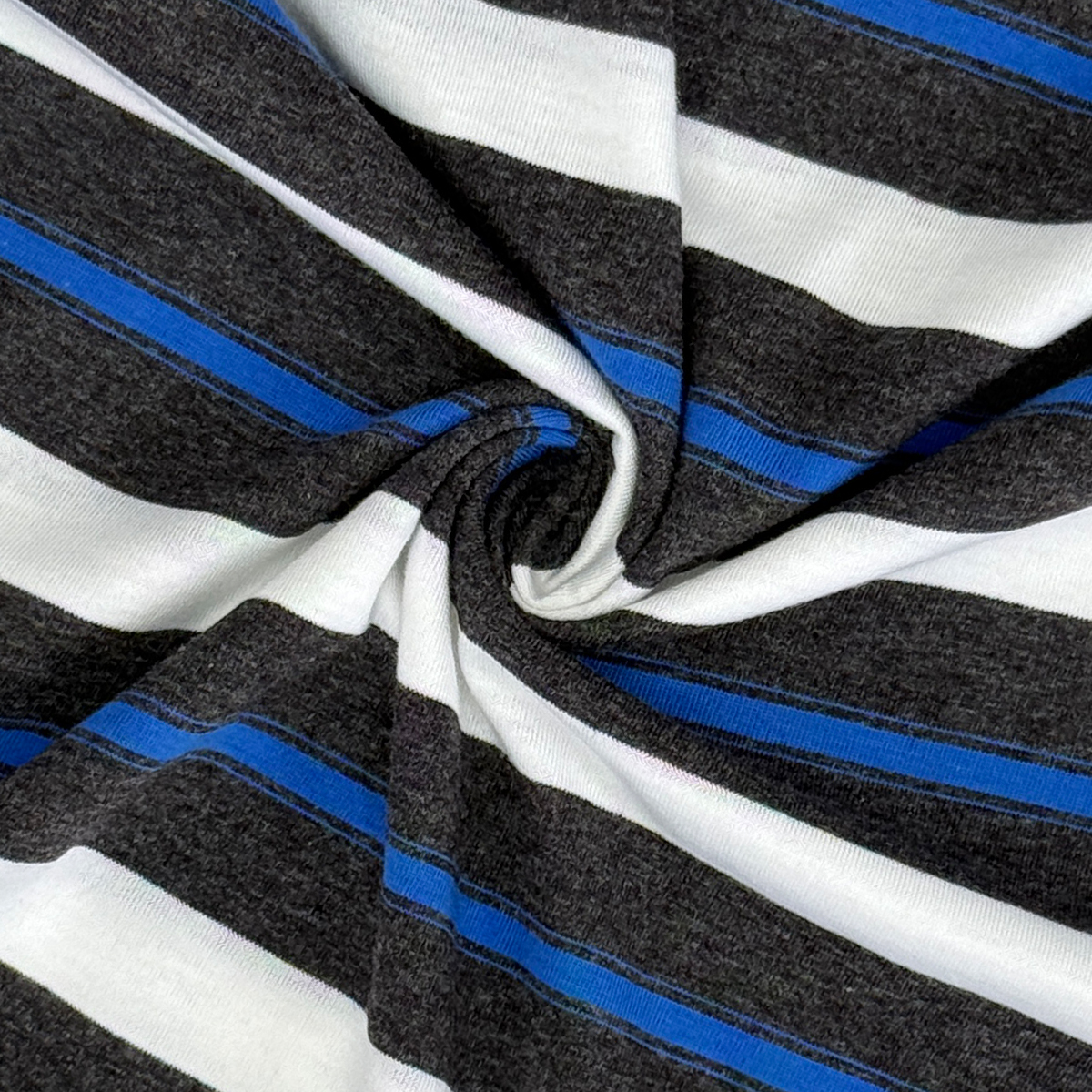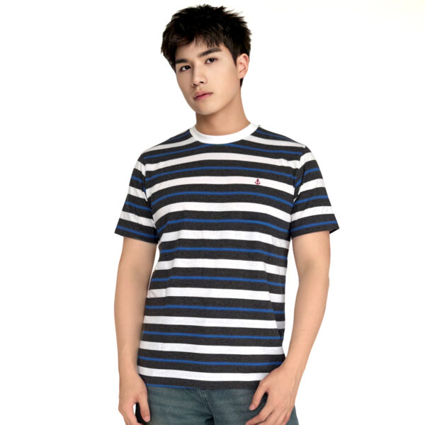 Striped Crew Neck T-Shirt (100% Cotton) (Grey)