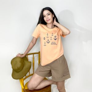 Striped Split Neck T-Shirt with Front Pocket (55% Cotton, 45% Polyester) (Grey)
