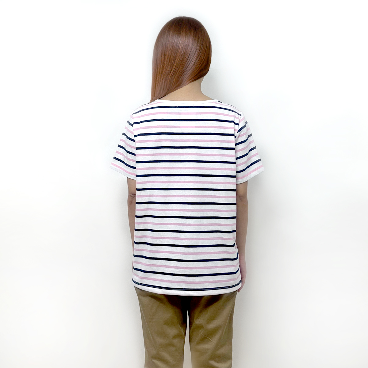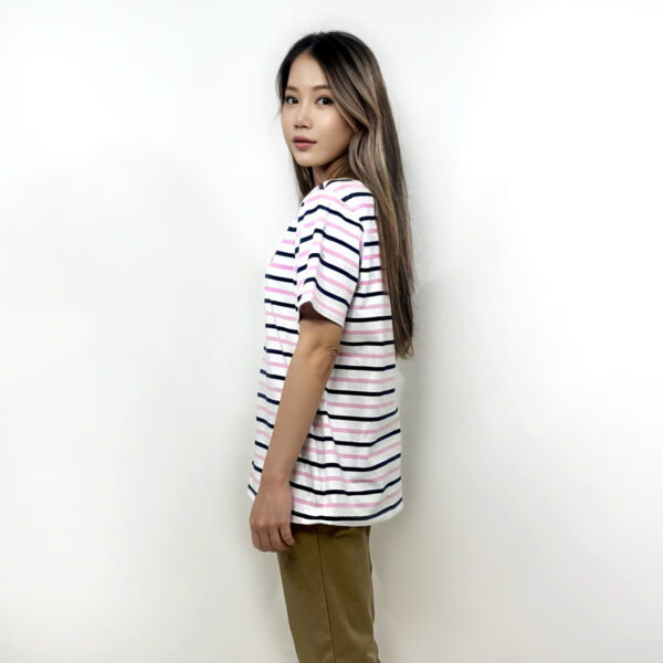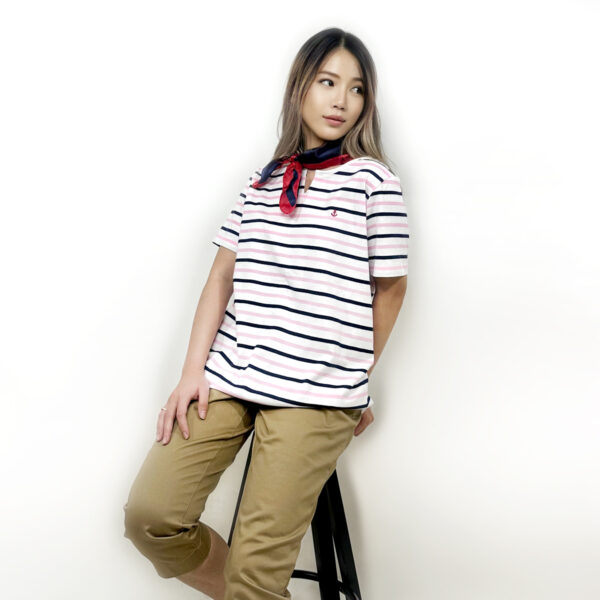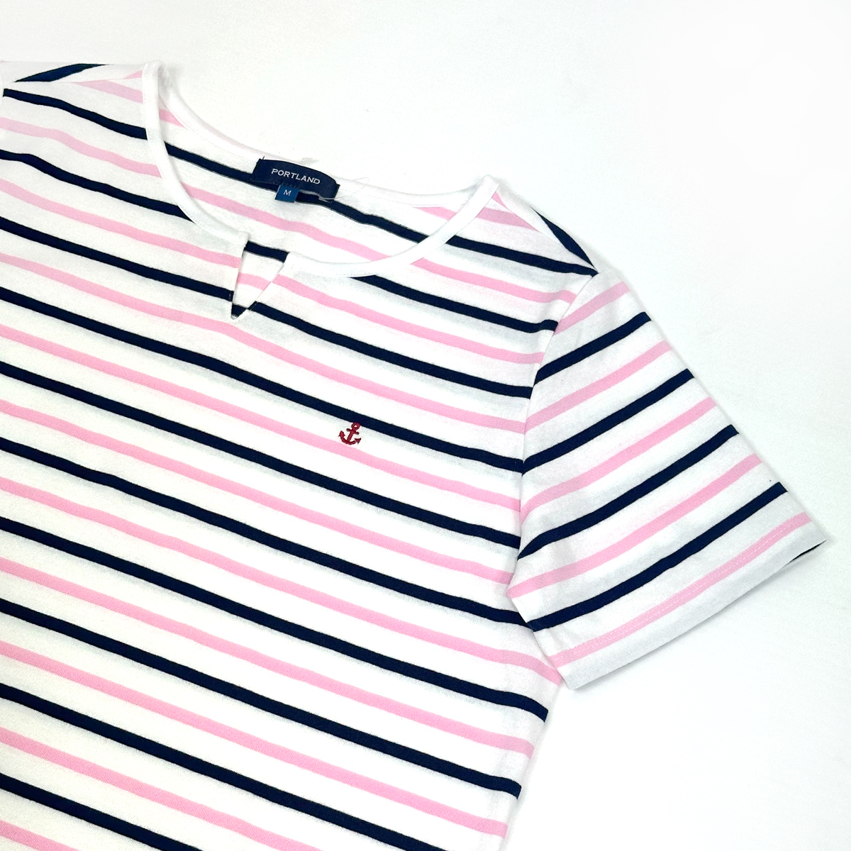 Striped T-Shirt with Anchor Embroidery (55% Cotton, 45% Polyester) (Pink)