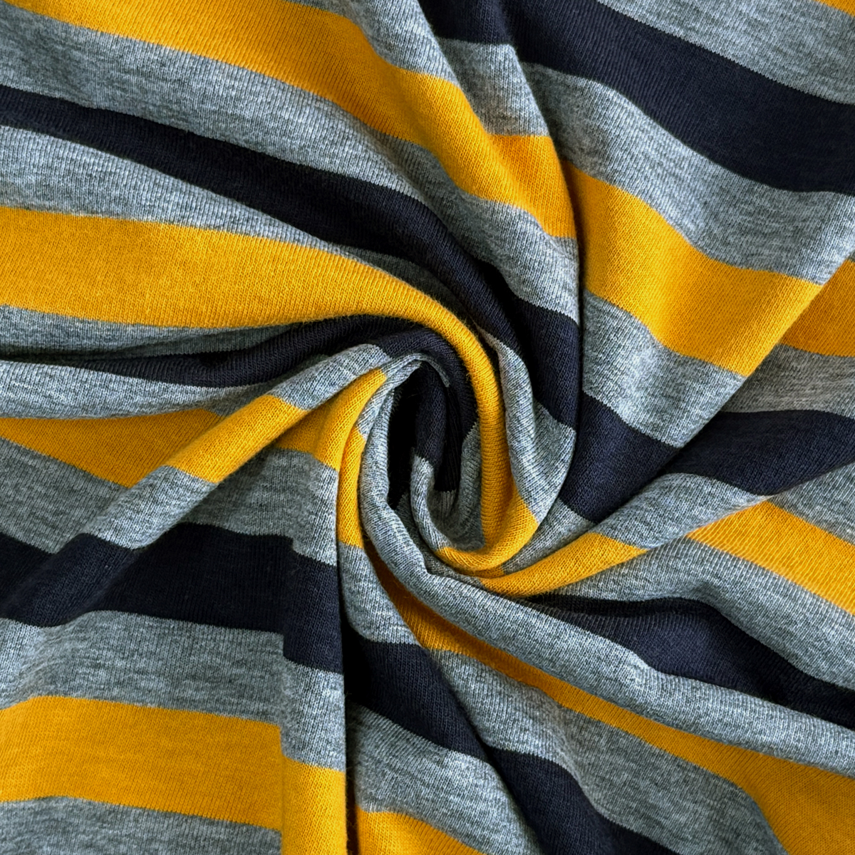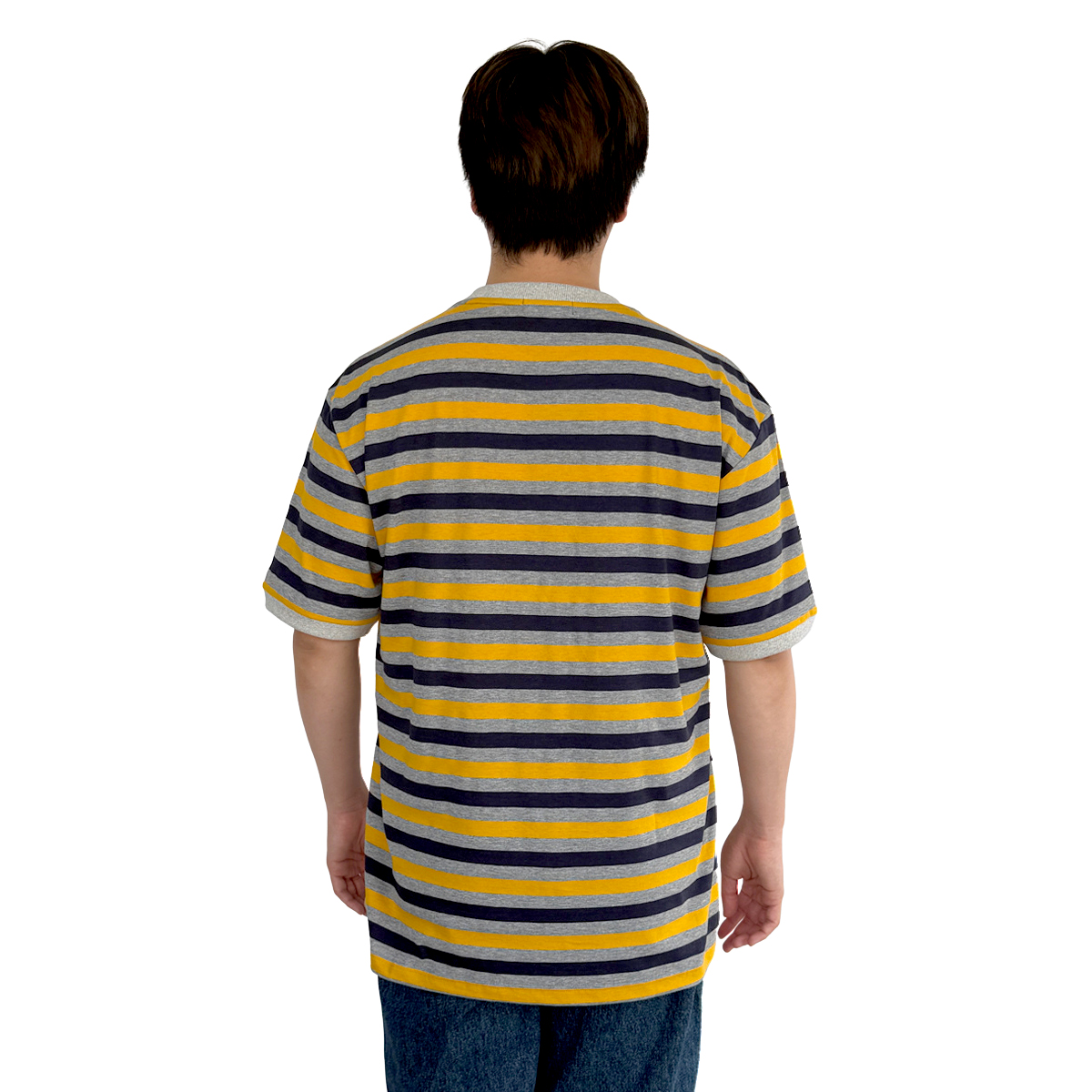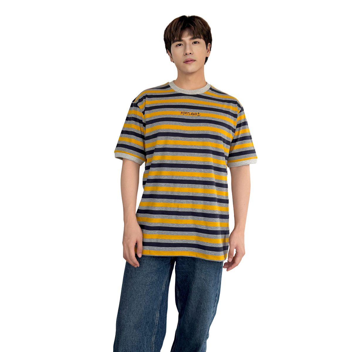 Striped T-Shirt with Embroidery (55% Cotton, 45% Polyester) (Yellow-Grey)