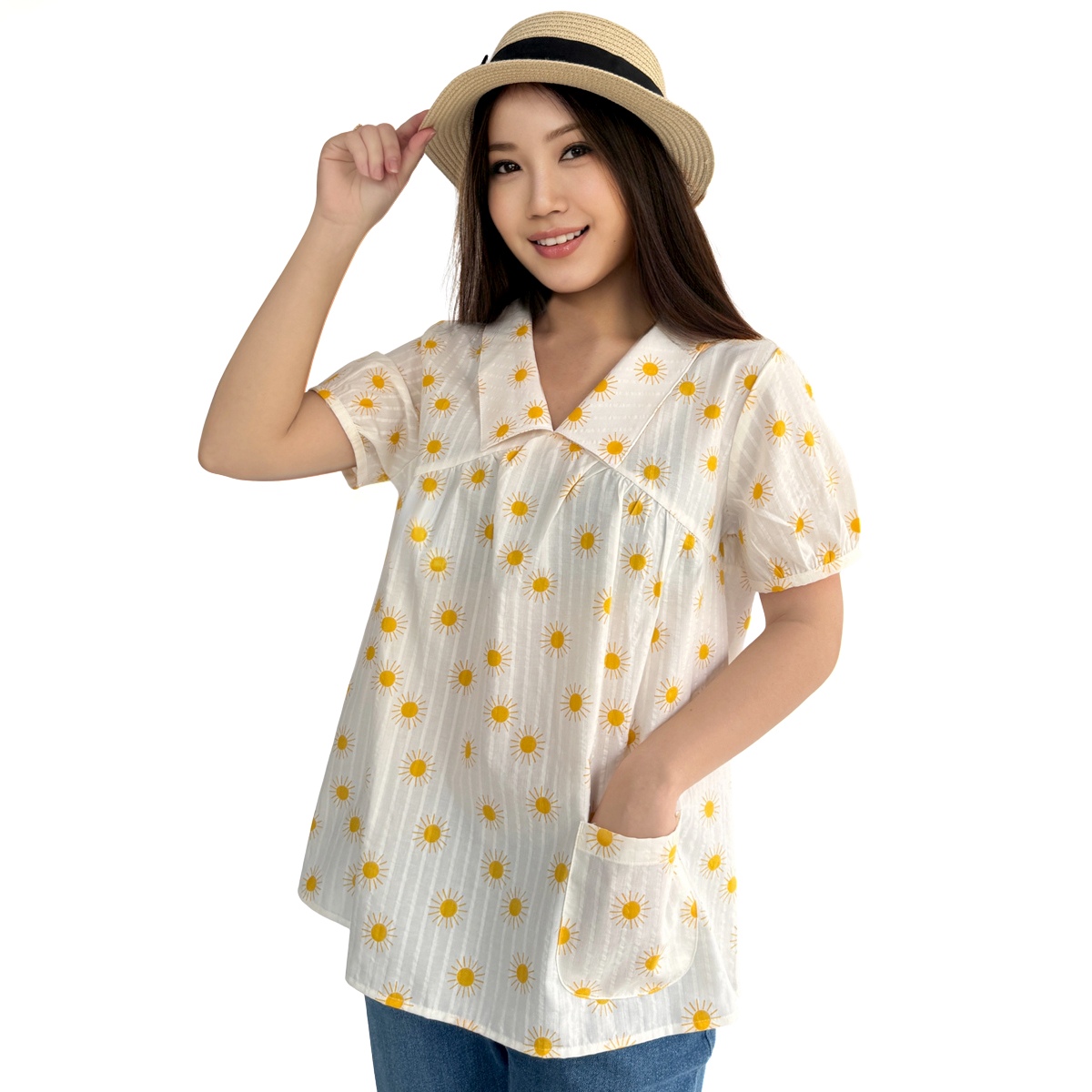 Sunshine Pocket Blouse (50% Cotton, 50% Rayon) (White)