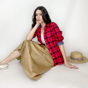 Flannel Checked 3/4 Sleeve Shirt (Red)